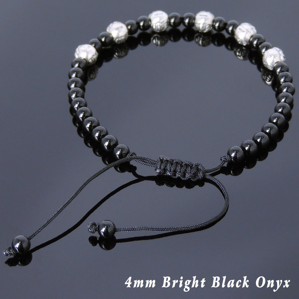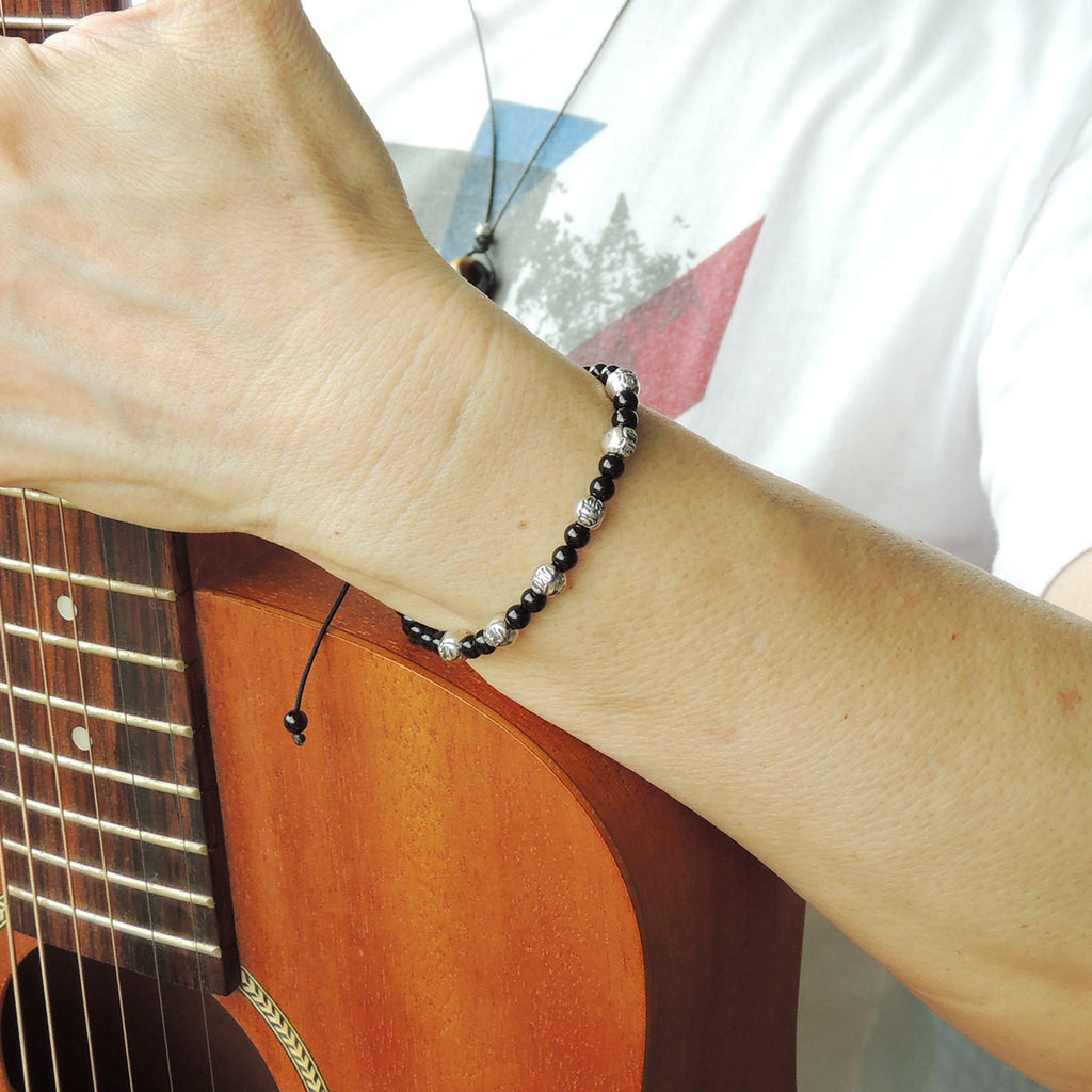 Men's Women Bright Black Onyx Adjustable Braided Bracelet 925 Sterling Silver Celtic Beads DiyNotion BR796