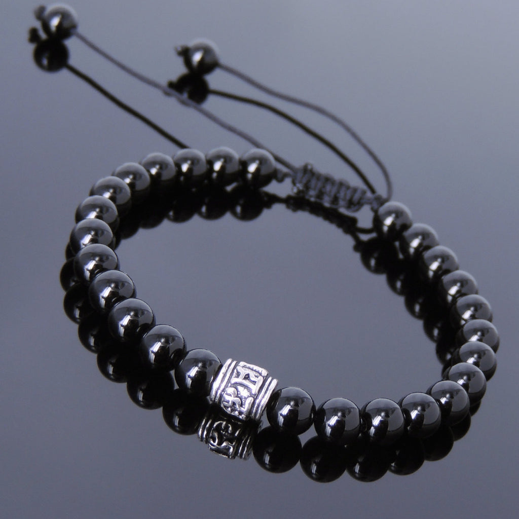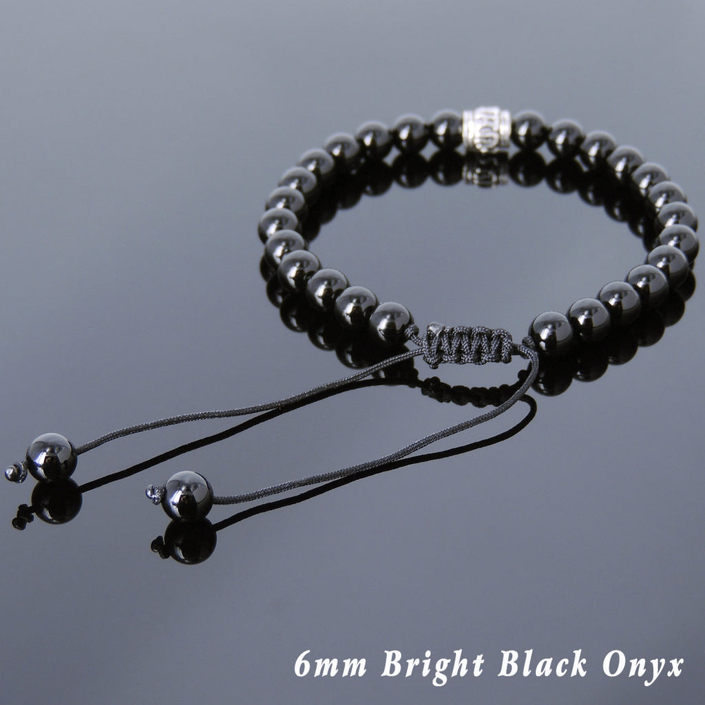 Men's Women Bright Black Onyx Adjustable Braided Bracelet 925 Sterling Silver OM Buddhism Bead DiyNotion BR818