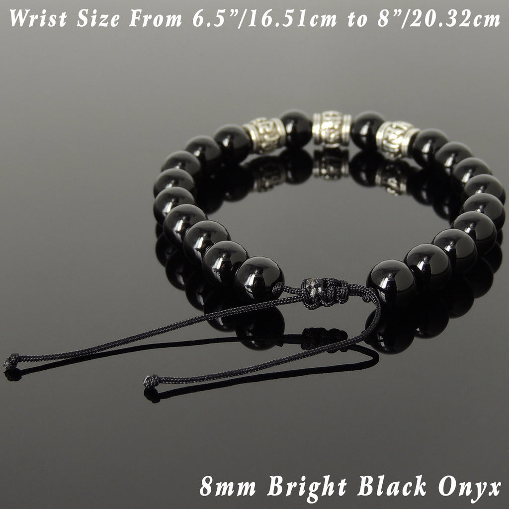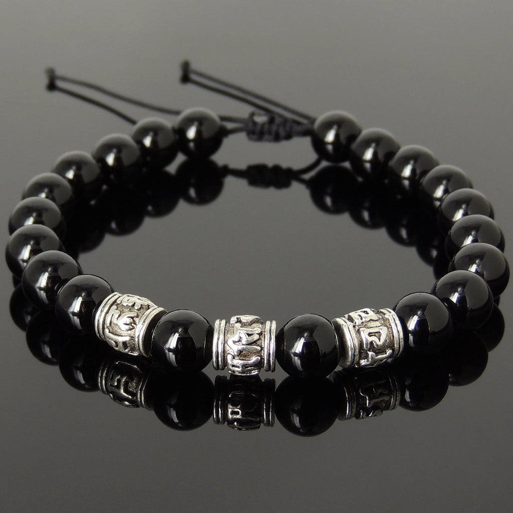 Men's Women Bright Black Onyx Adjustable Braided Bracelet Tibetan Silver OM Buddhism Beads DiyNotion T341