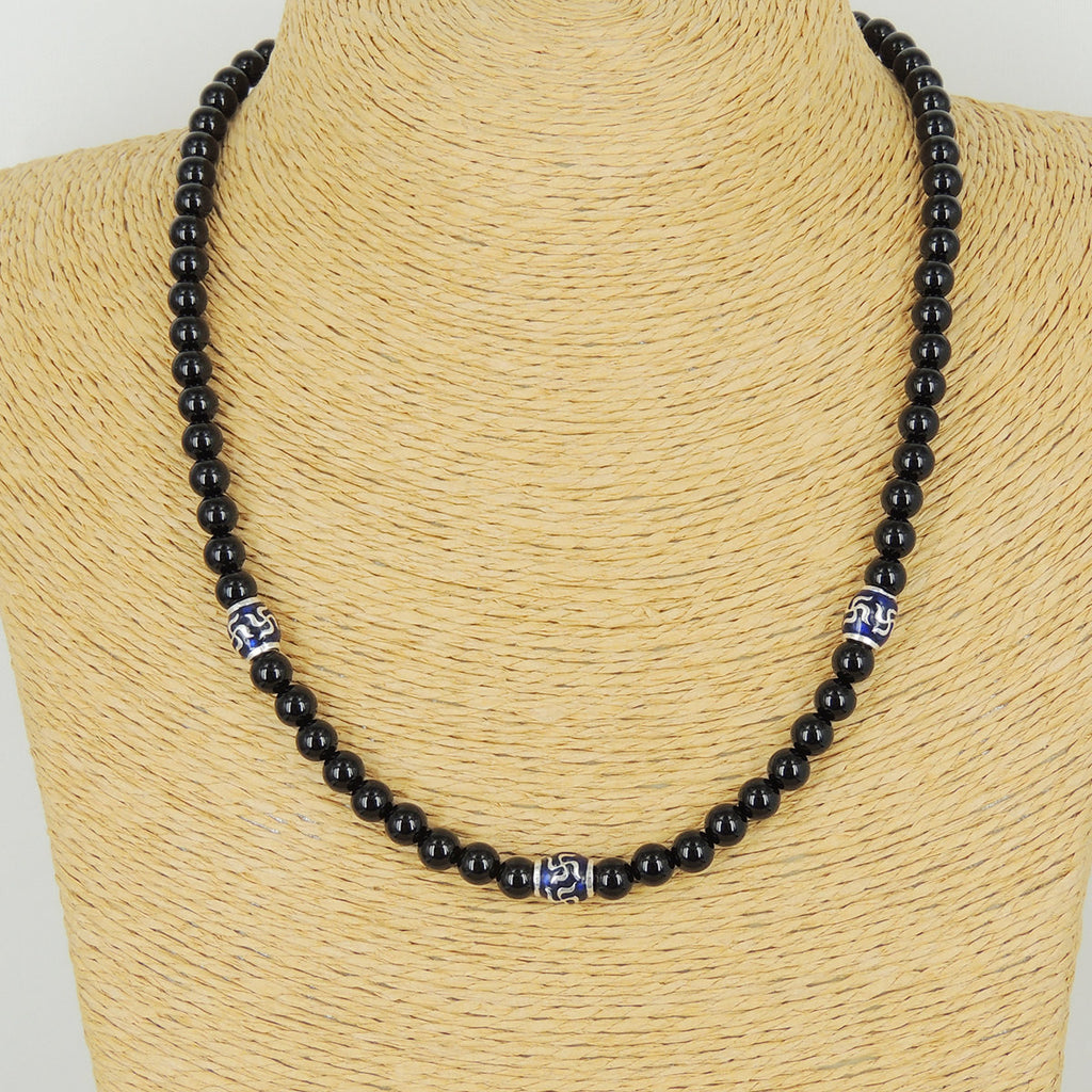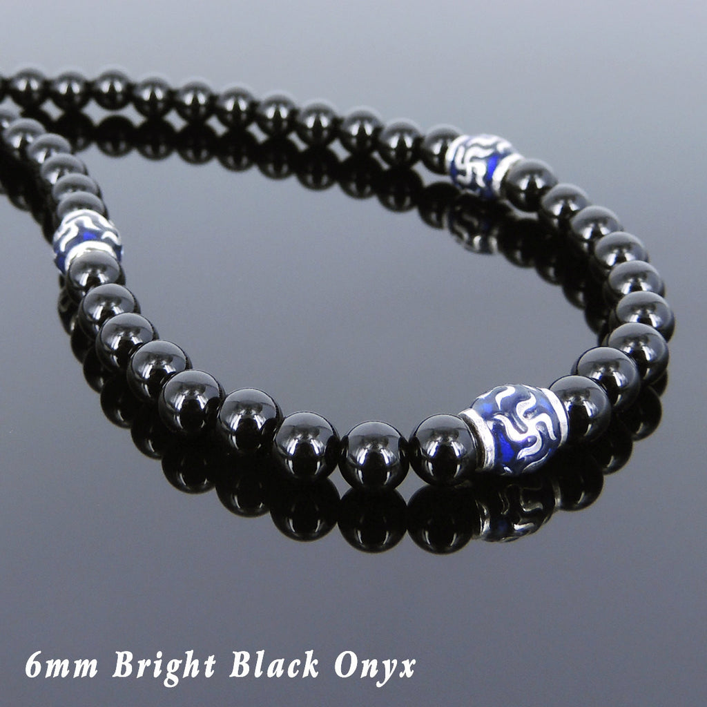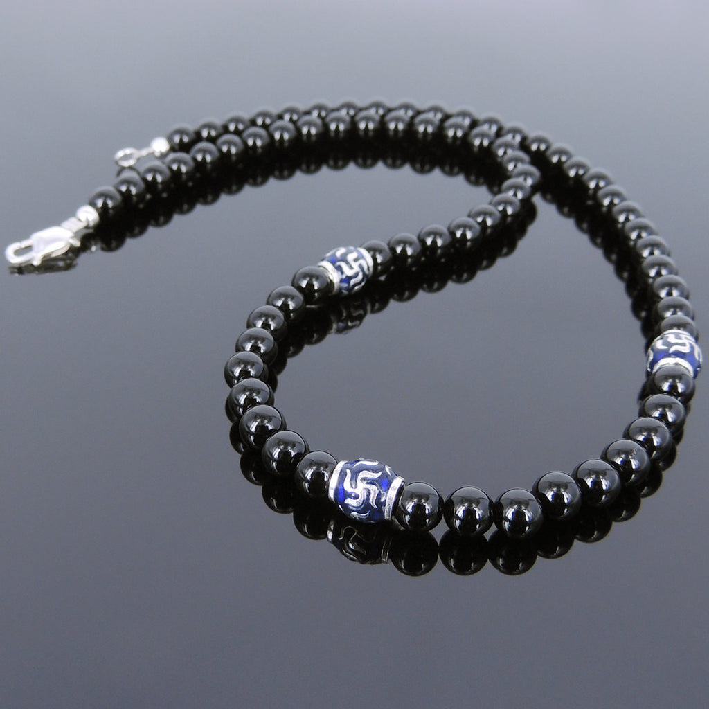 Men's Women Bright Black Onyx Sterling Silver Necklace Gemstone Beads Clasp DiyNoion Handmade NK124