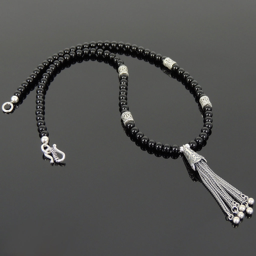 Men's Women Bright Black Onyx Sterling Silver Necklace Gemstone Pendant Clasp DiyNoion Handmade NK109