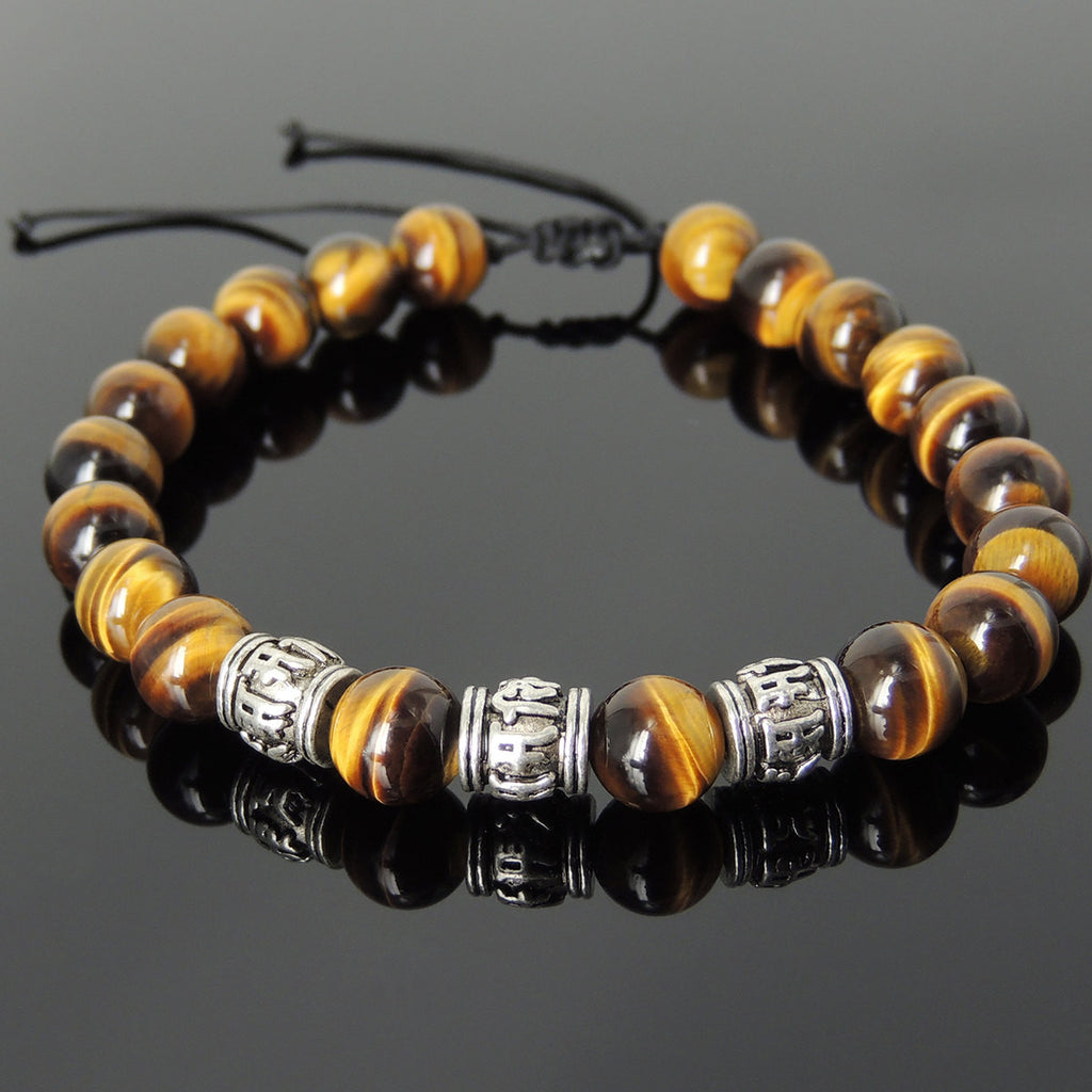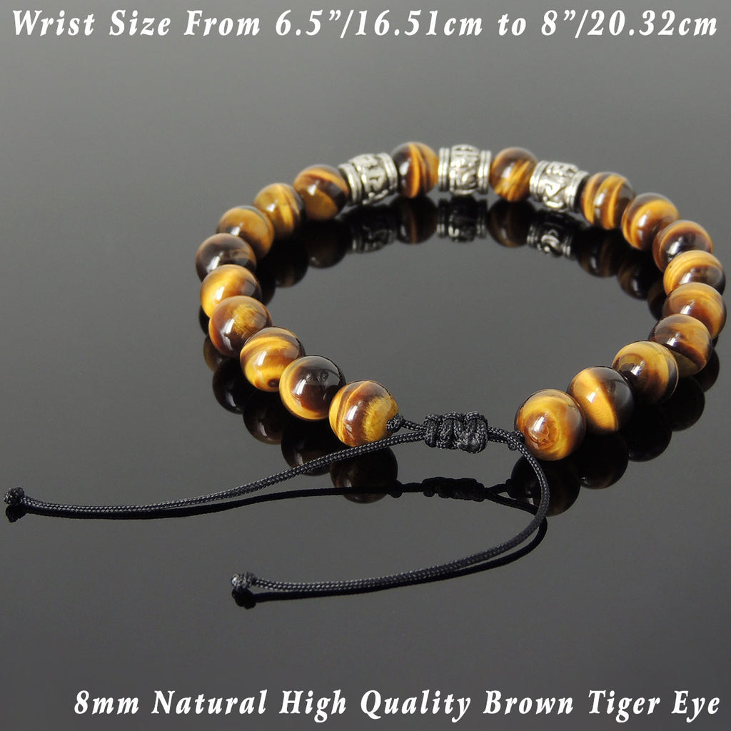 Men's Women Brown Tiger Eye Adjustable Braided Bracelet Tibetan Silver OM Buddhism Beads DiyNotion T343