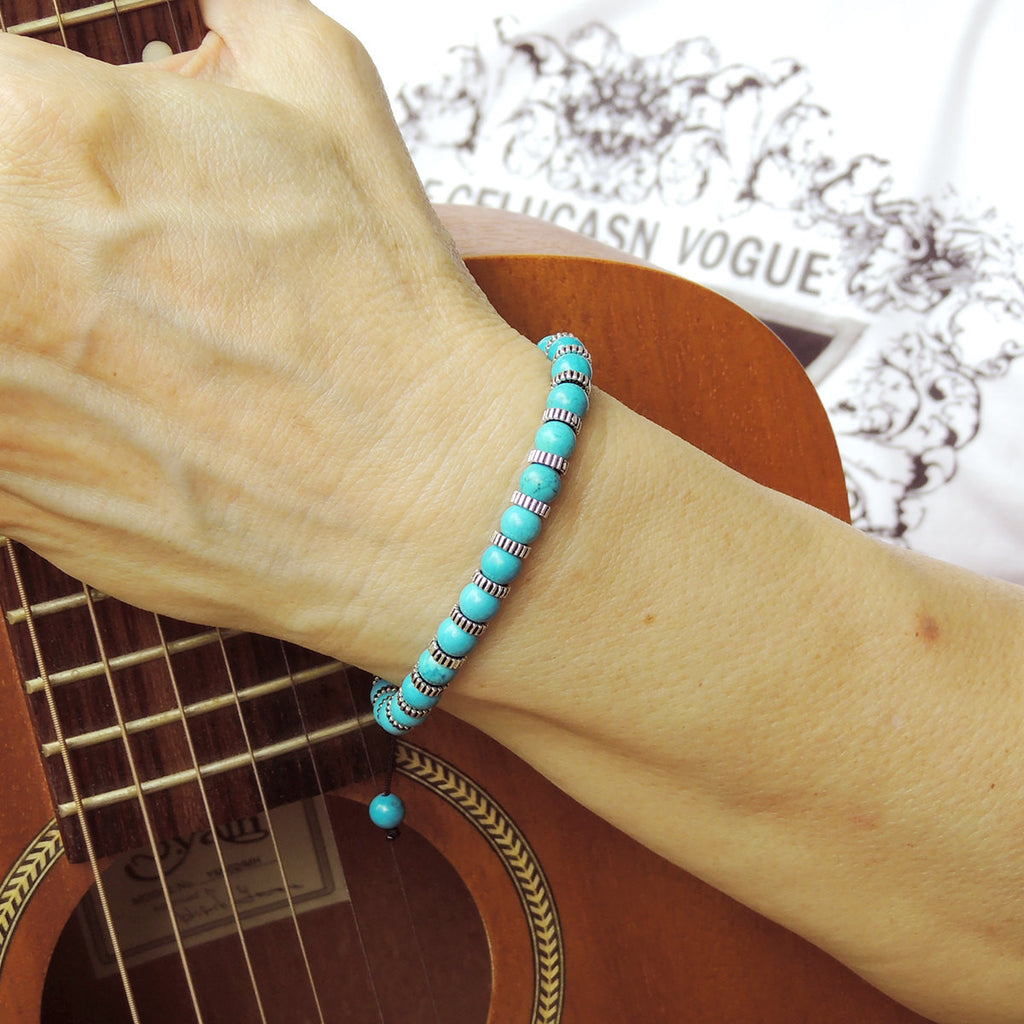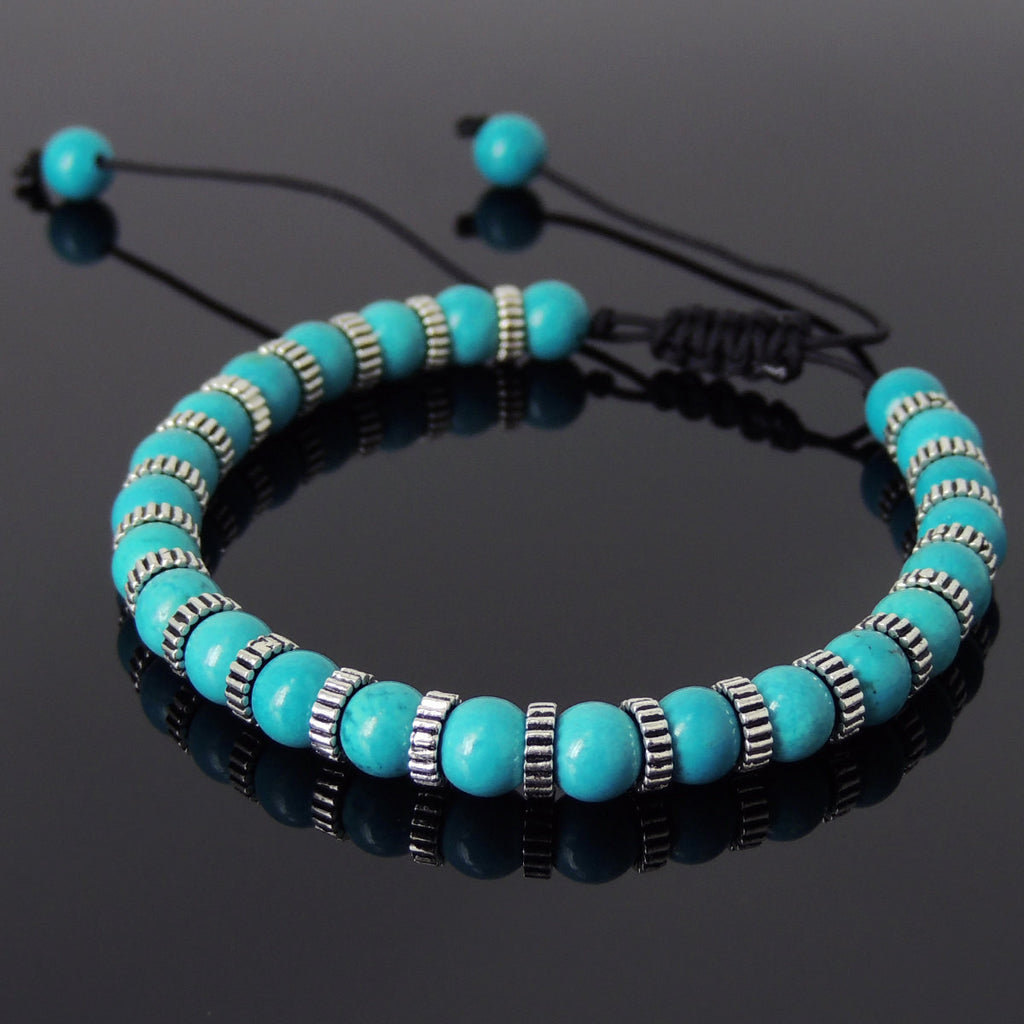 Men's Women Enhanced Turquoise Adjustable Braided Bracelet 925 Sterling Silver Spacers DiyNotion BR854