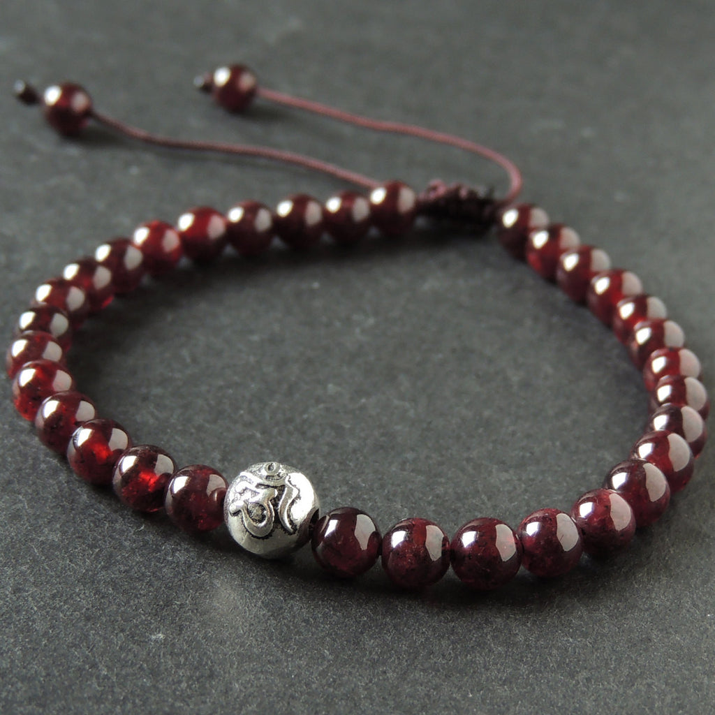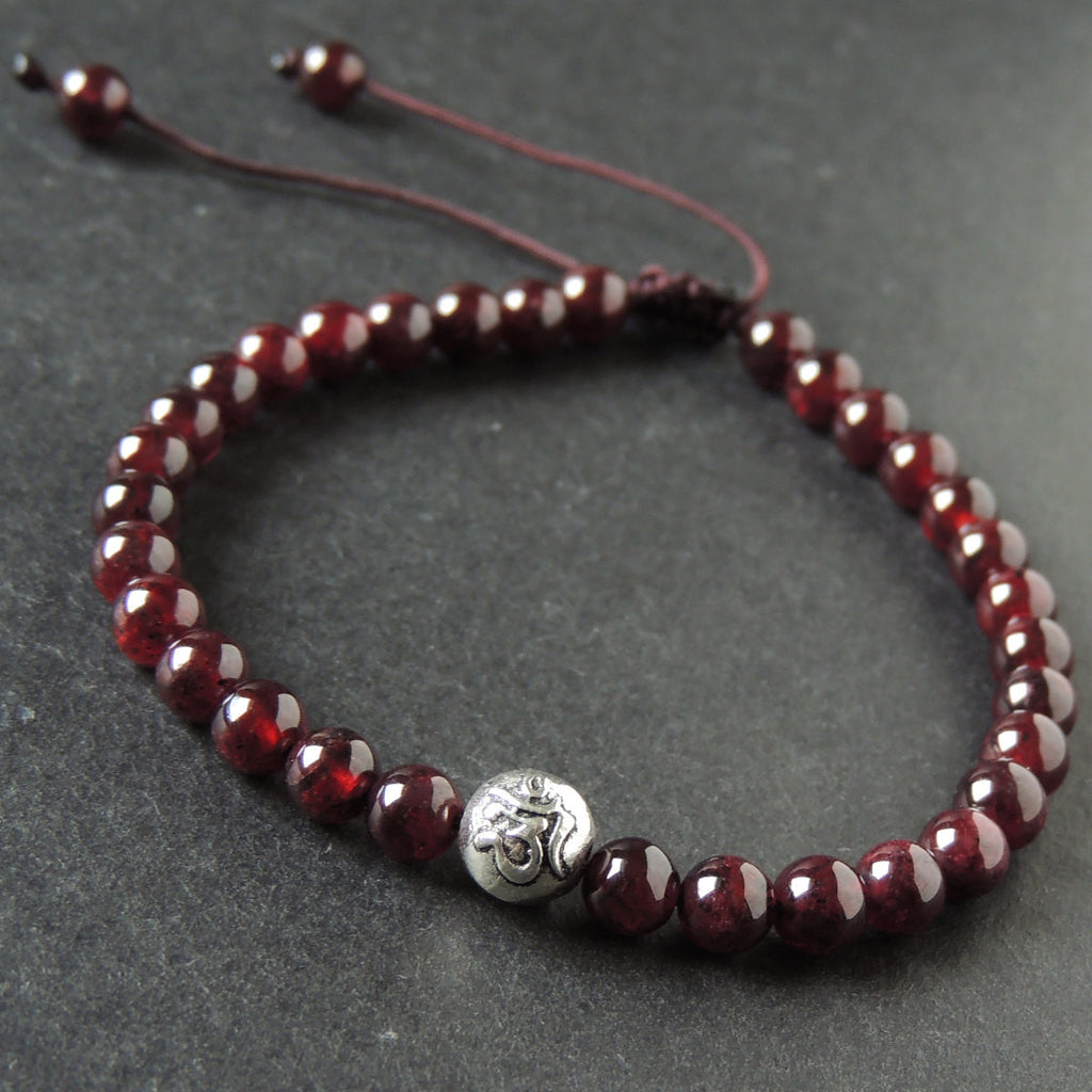 Men's Women Garnet Adjustable Braided Bracelet 925 Sterling Silver OM Buddhism Bead DiyNotion BR1019