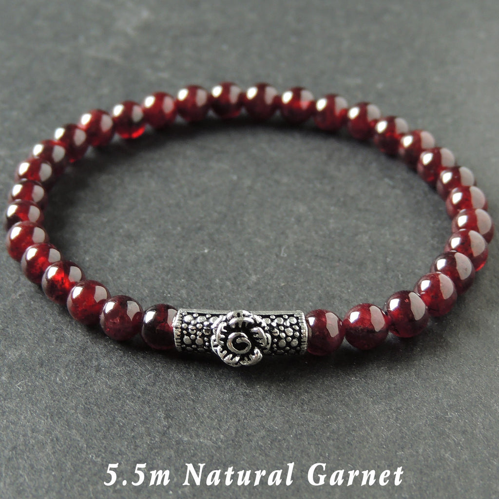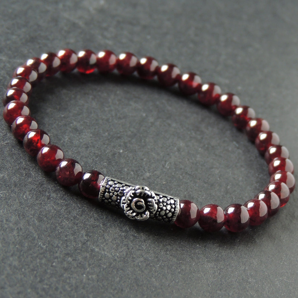 Men's Women Garnet Bracelet 925 Sterling Silver Rose Charm DiyNotion Handmade BR992