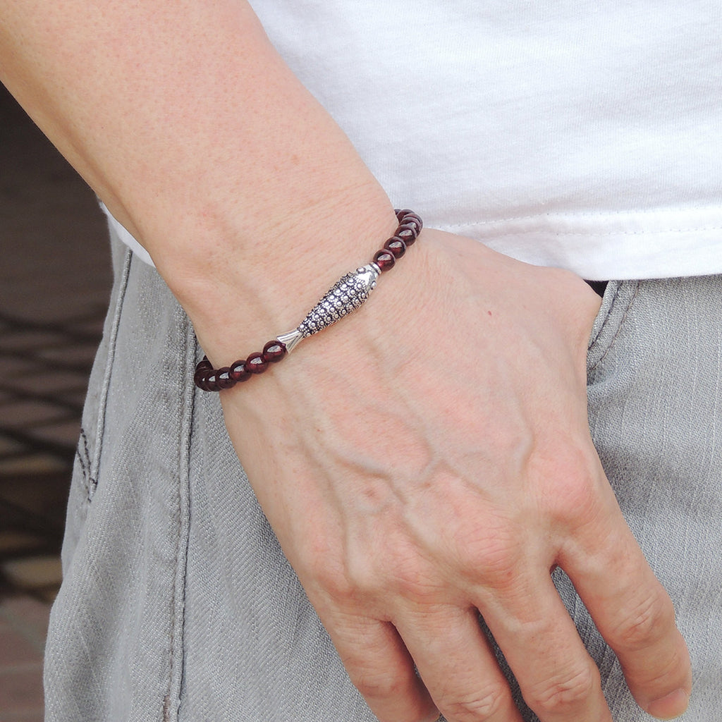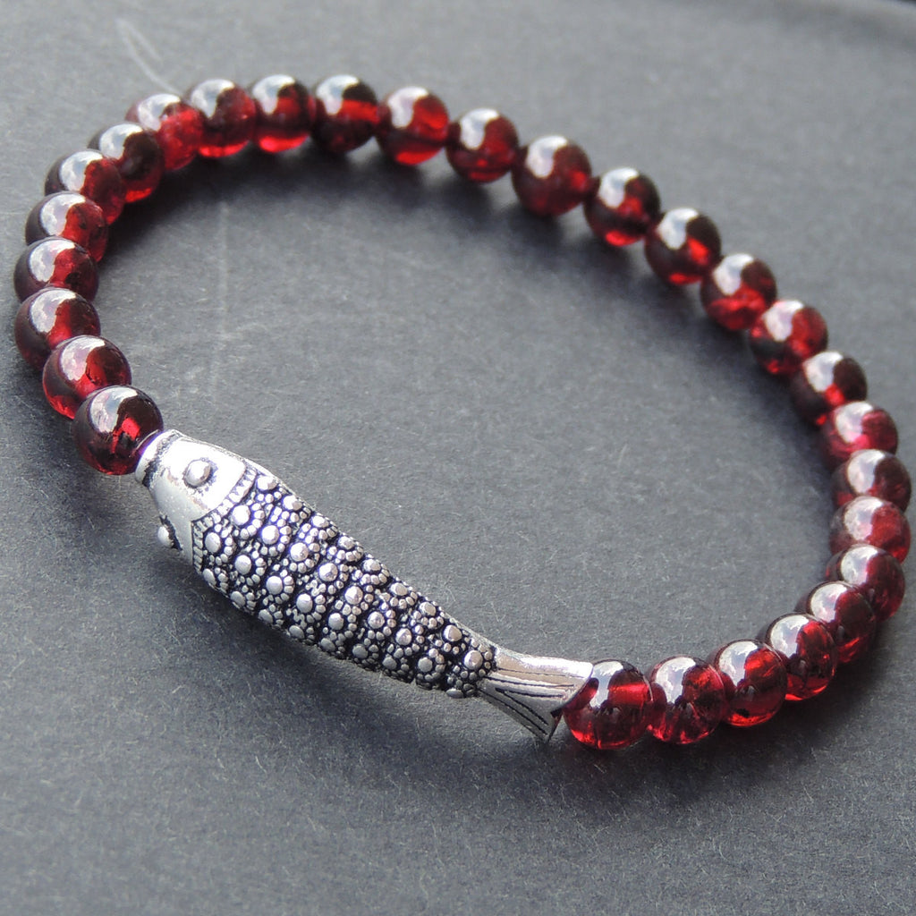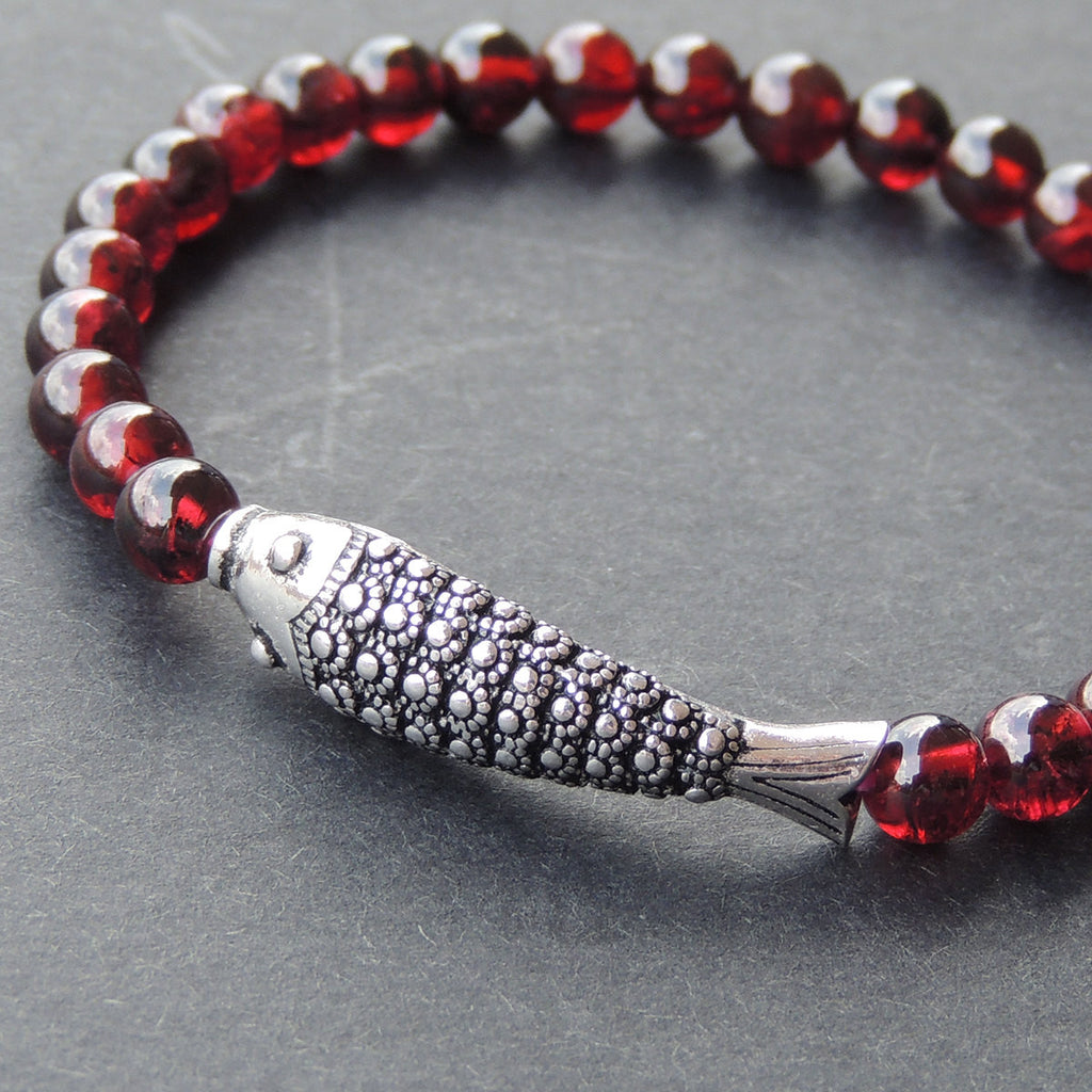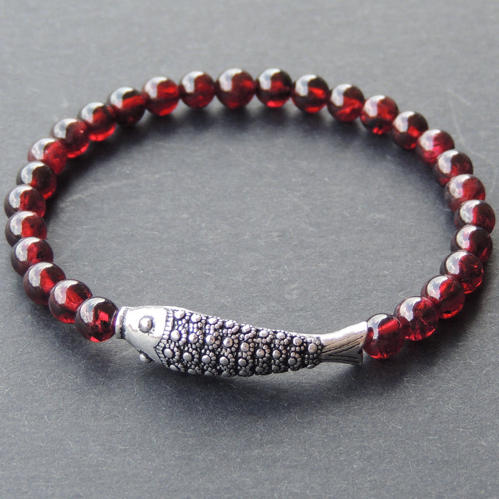Men's Women Garnet Sterling Silver Bracelet AAA Gemstone 925 Fish Charm DiyNotion Handmade BR476