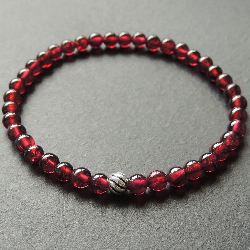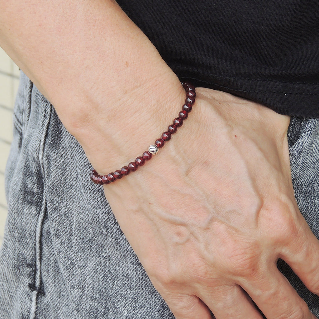 Men's Women Garnet Sterling Silver Bracelet AAA Gemstone 925 Round Bead DiyNotion Handmade BR620