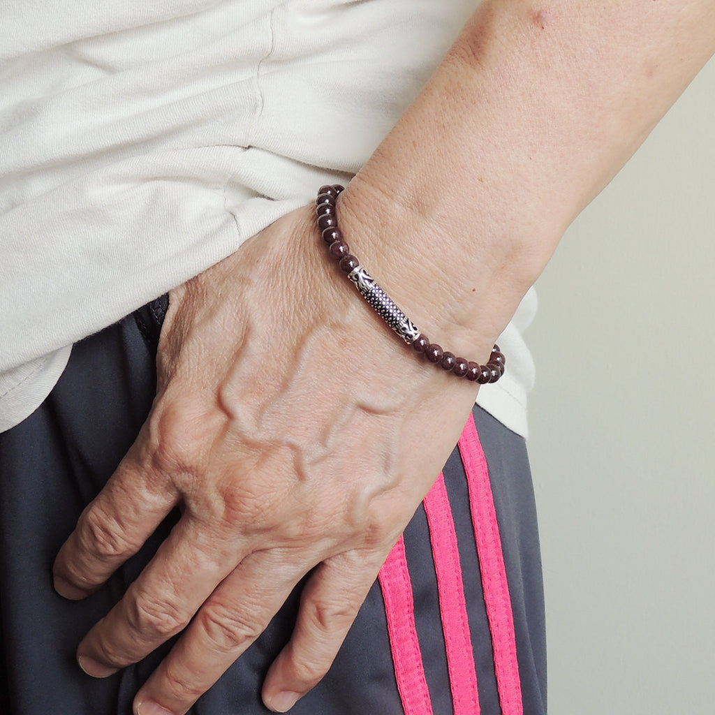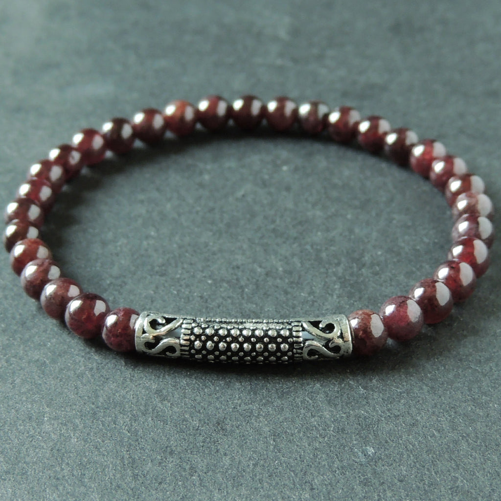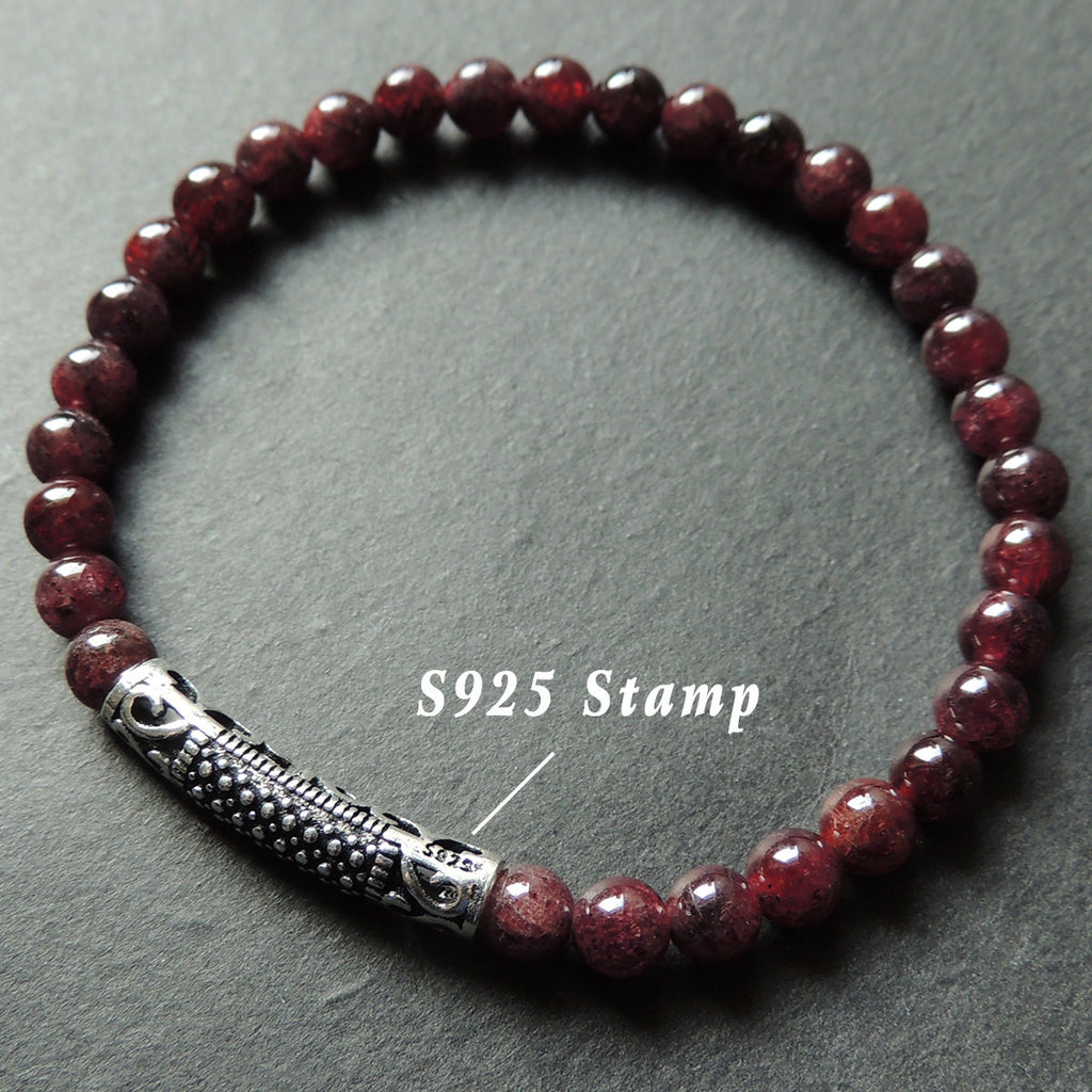 Men's Women Garnet Sterling Silver Bracelet Gemstone 925 Stamp Lucky Charm DiyNotion Handmade BR887