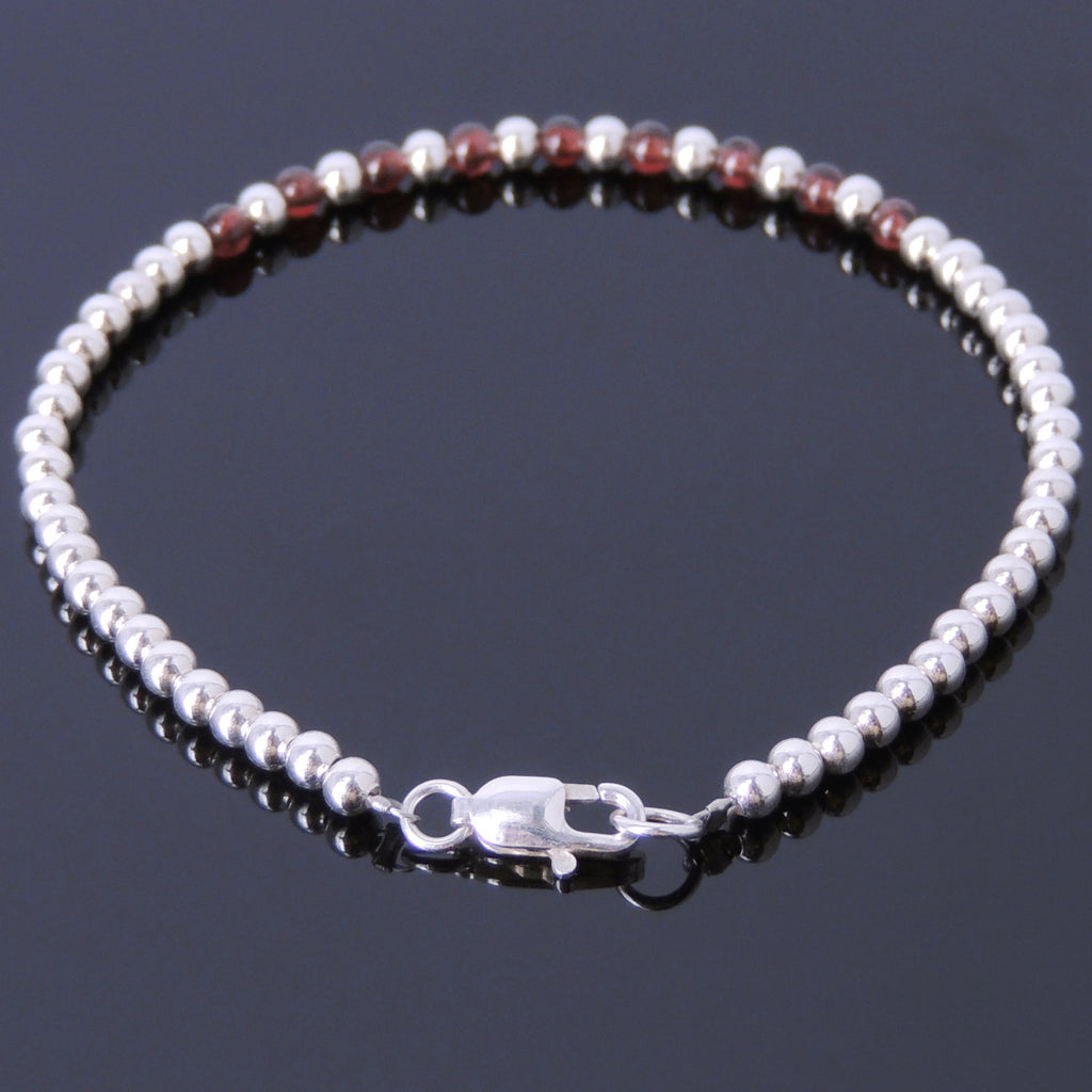 Men's Women Garnet Sterling Silver Bracelet Natural AAA Gemstone 925 Bead Clasp DiyNotion Handmade BR484