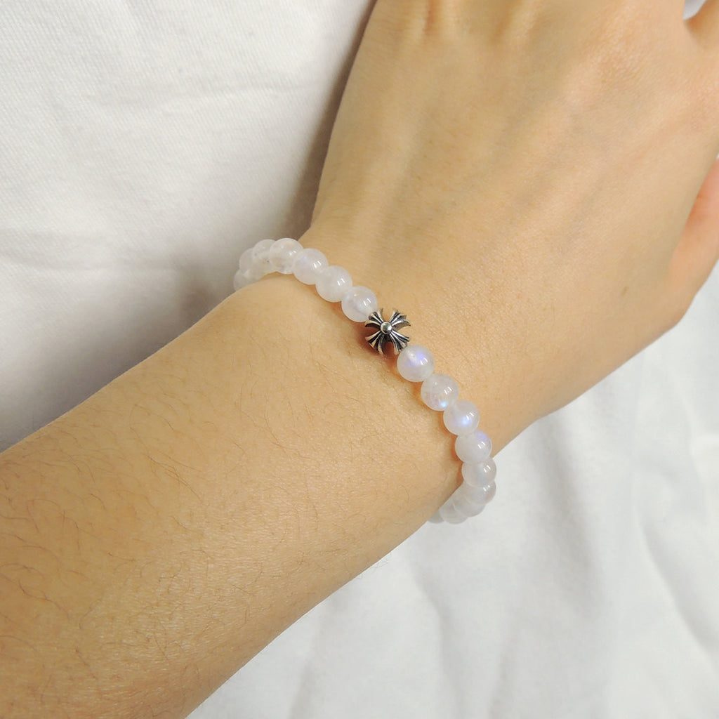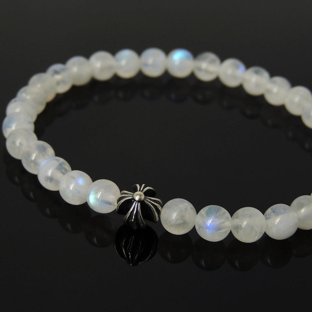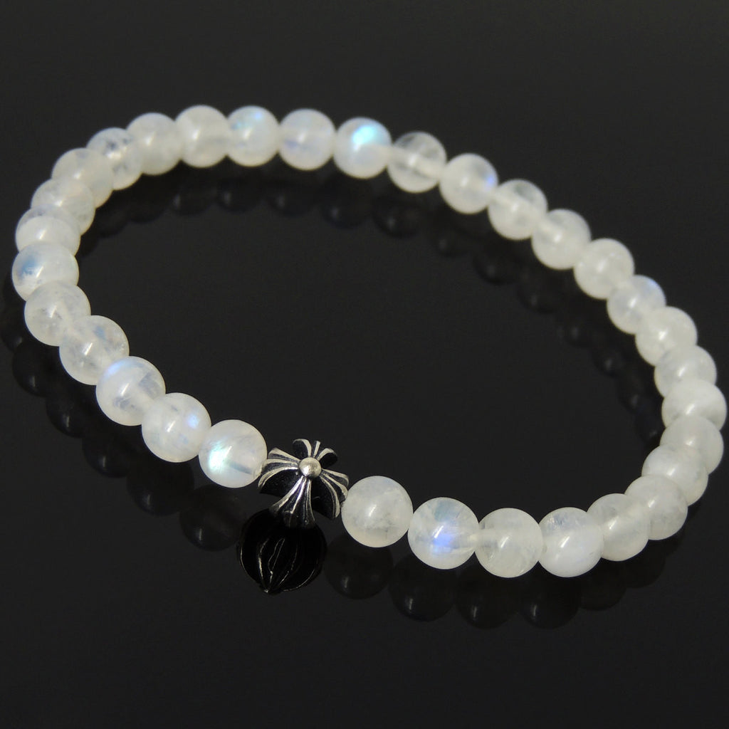 Men's Women Gemstone Strong Flash Moonstone Bracelet 925 Sterling Silver Cross Bead DiyNotion BR1042