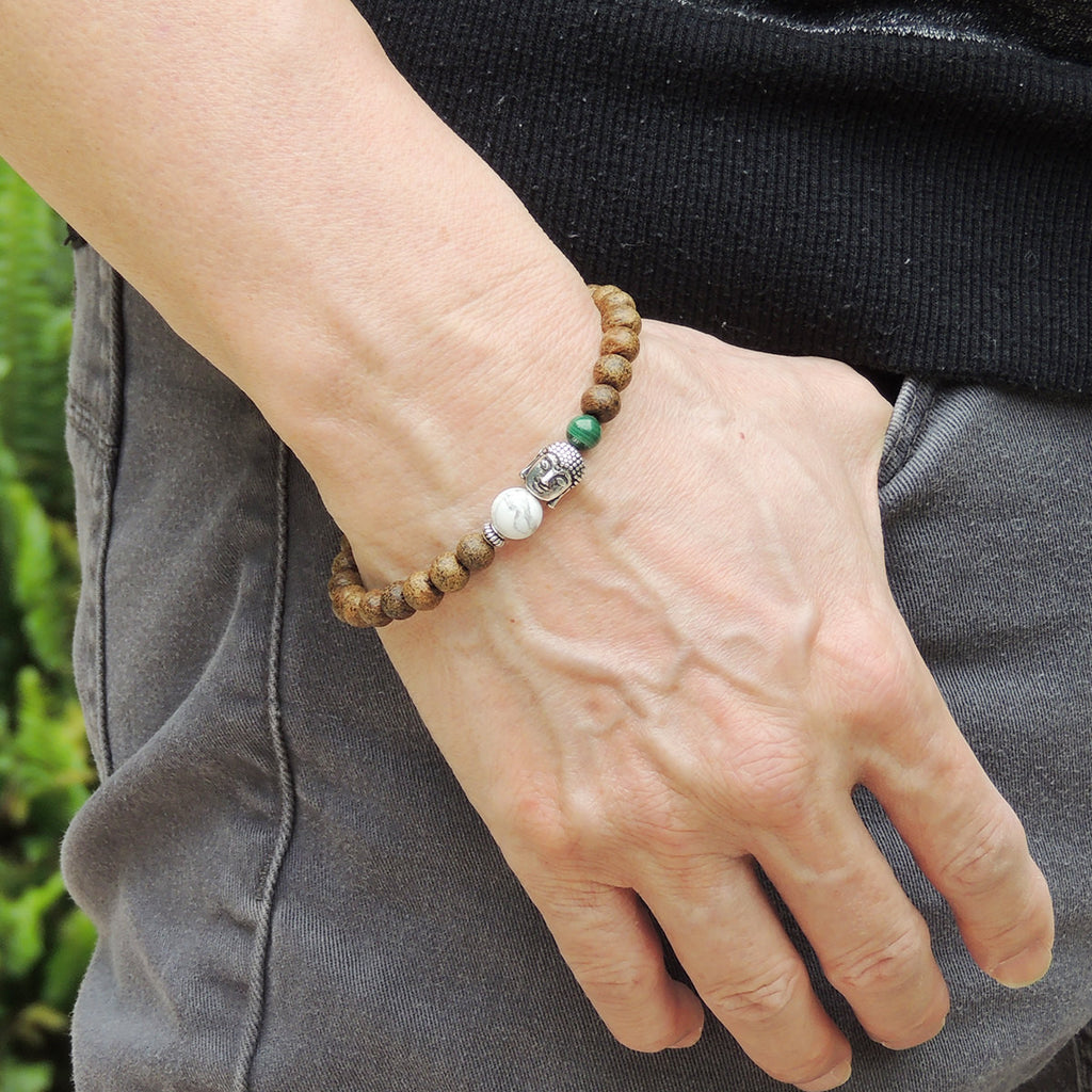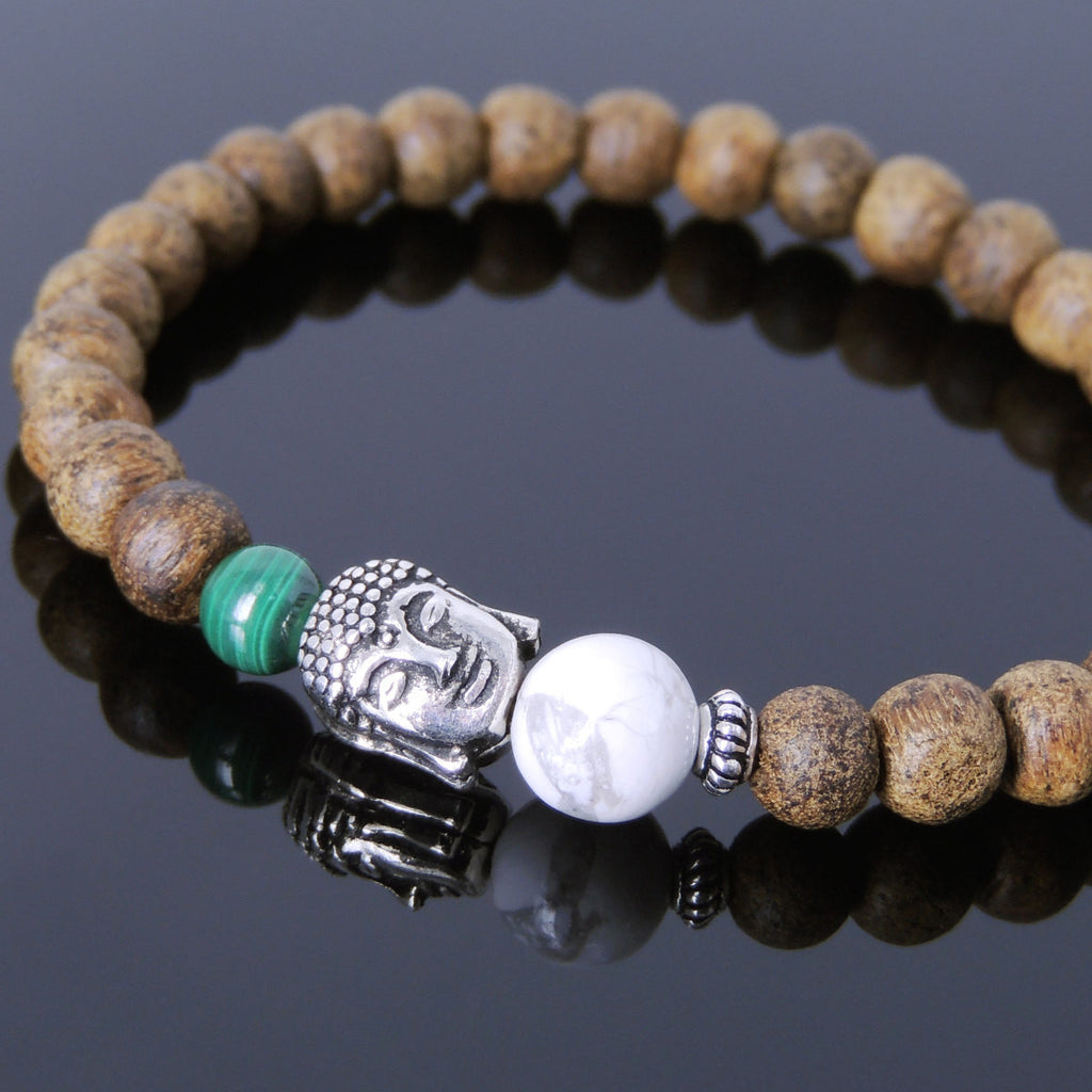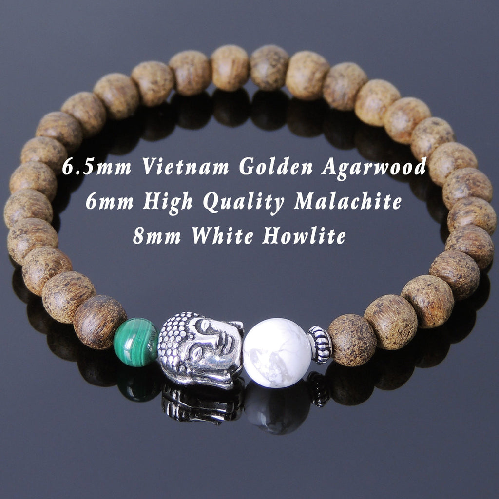 Materials: Agarwood,Malachite,White Howlite,S925 Sterling Silver,Elastic Cords