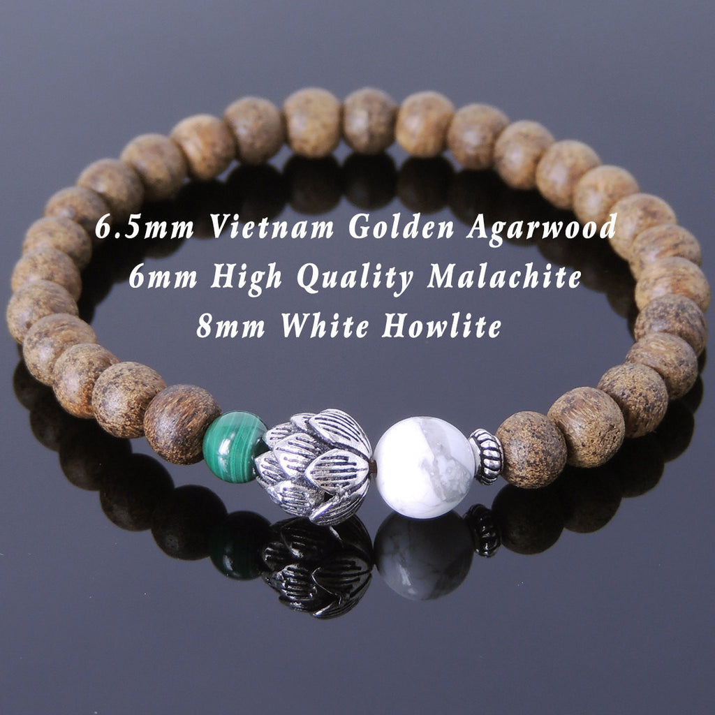 Materials: Agarwood,Malachite,White Howlite,S925 Sterling Silver,Elastic Cords