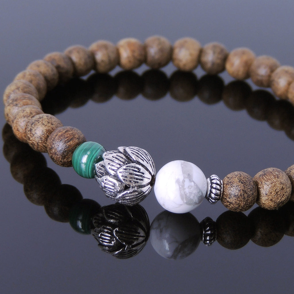 Men's Women Golden Agarwood Malachite White Howlite Bracelet 925 Sterling Silver Lotus Bead DiyNotion Handmade BR698