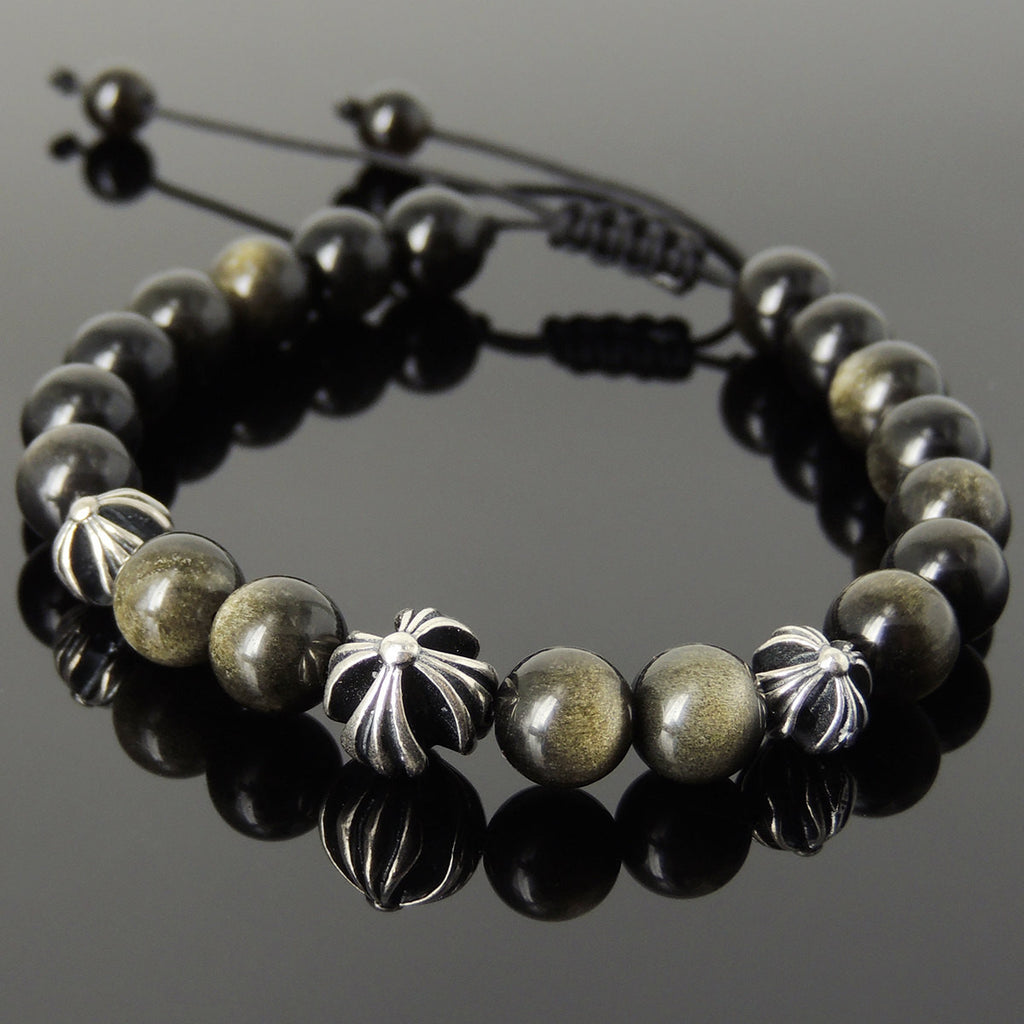 Materials: Gemstone,Golden Obsidian,925 Sterling Silver,Chinese Strong Braided Cords