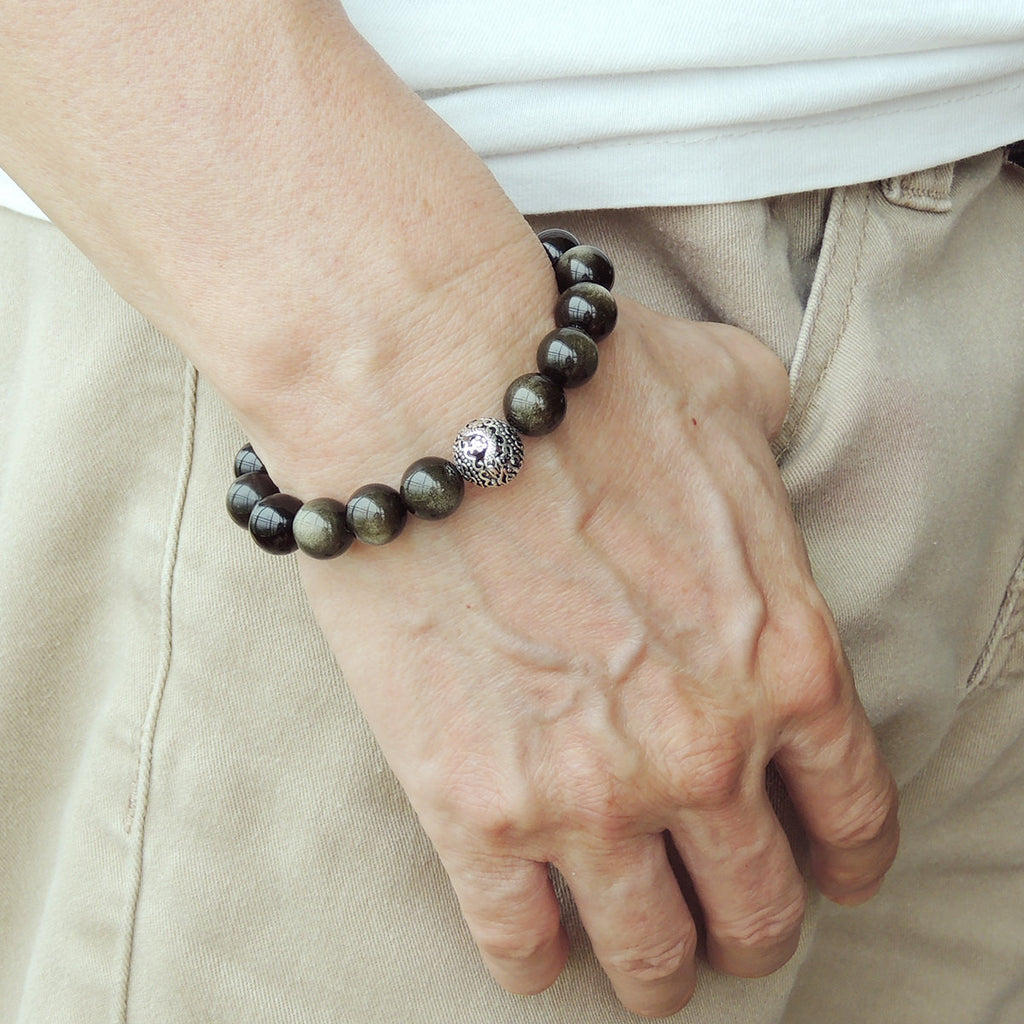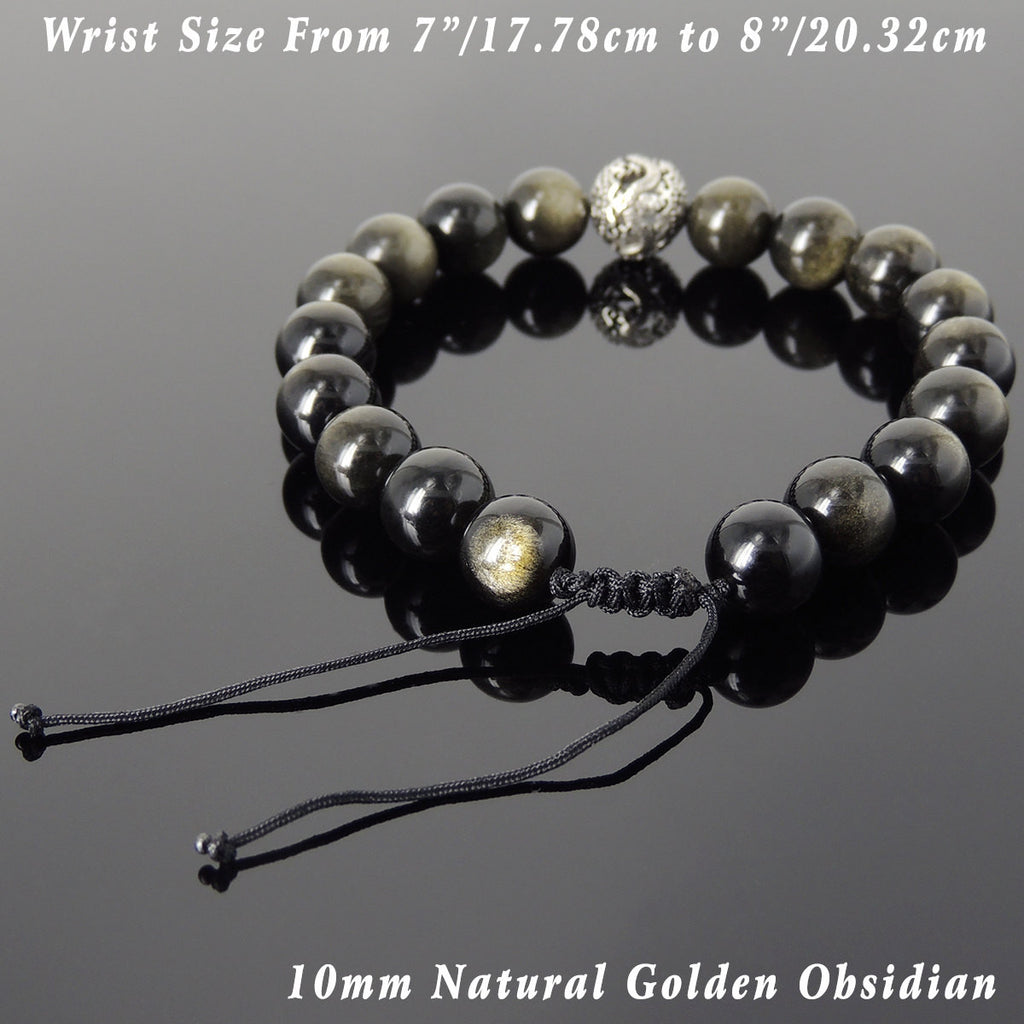 Materials: Gemstone,Golden Obsidian,925 Sterling Silver,Chinese Strong Braided Cords
