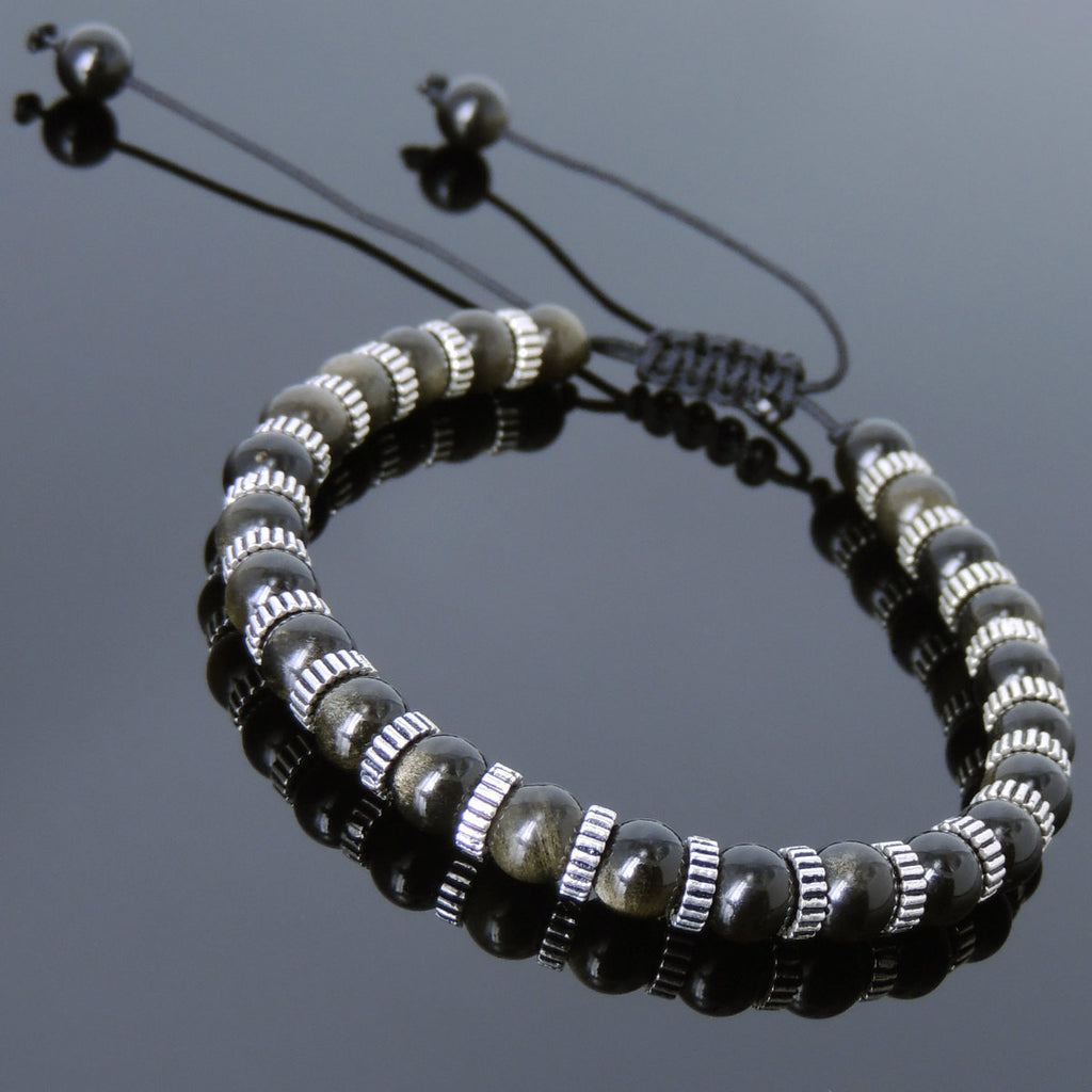 Materials: Gemstone,Golden Obsidian,925 Sterling Silver,Chinese Strong Braided Cords