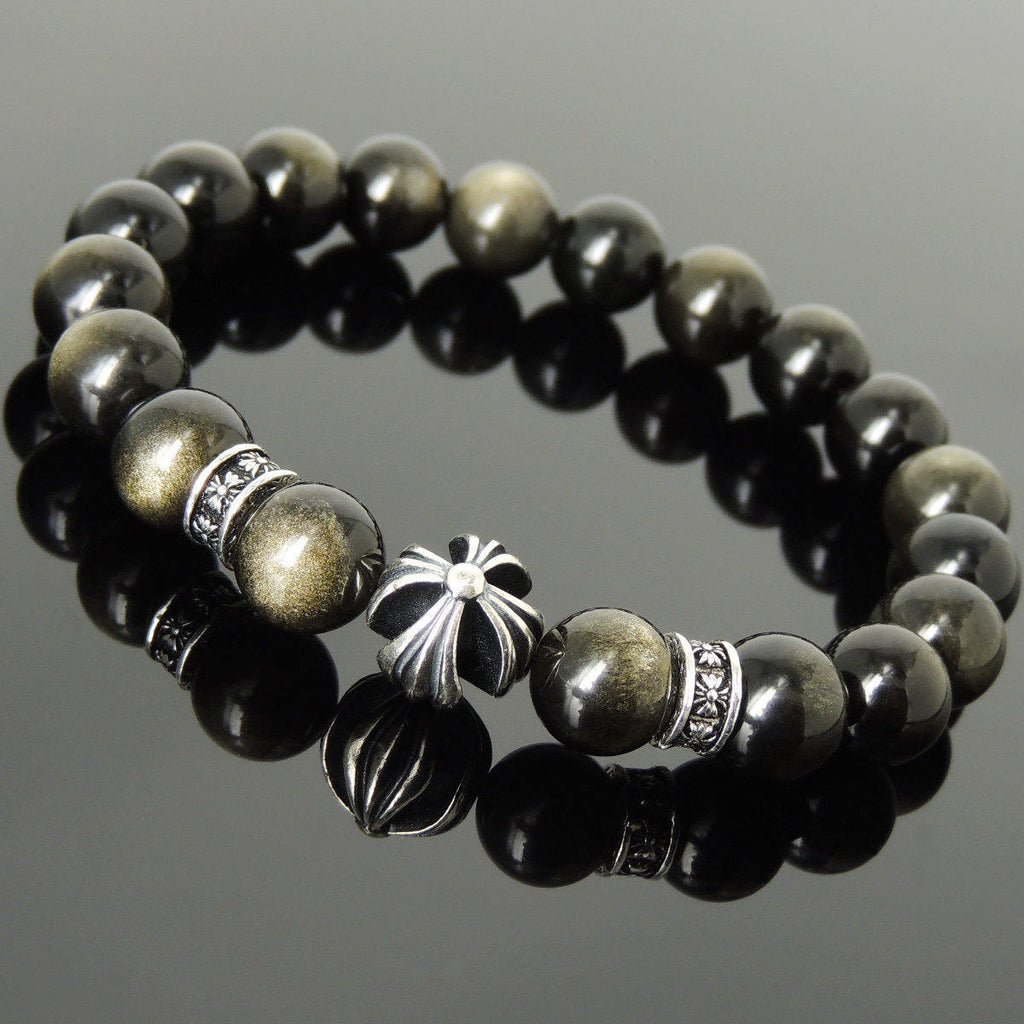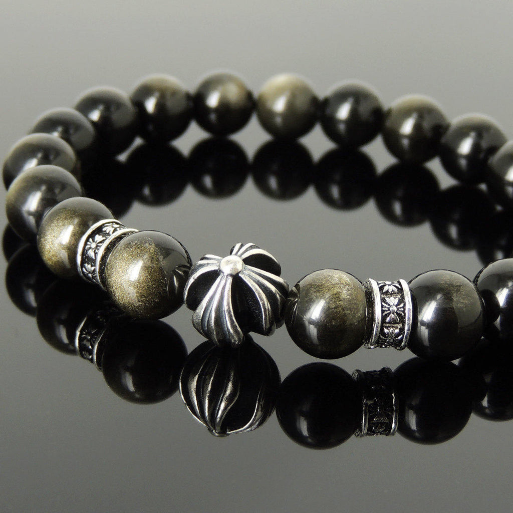 Materials: Healing Stone,Gemstone,Golden Obsidian,925 Sterling Silver,Elastic Cords