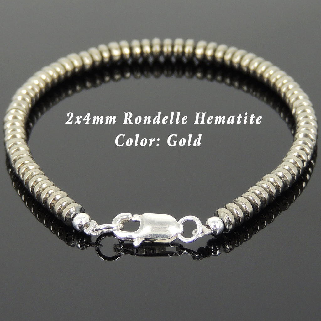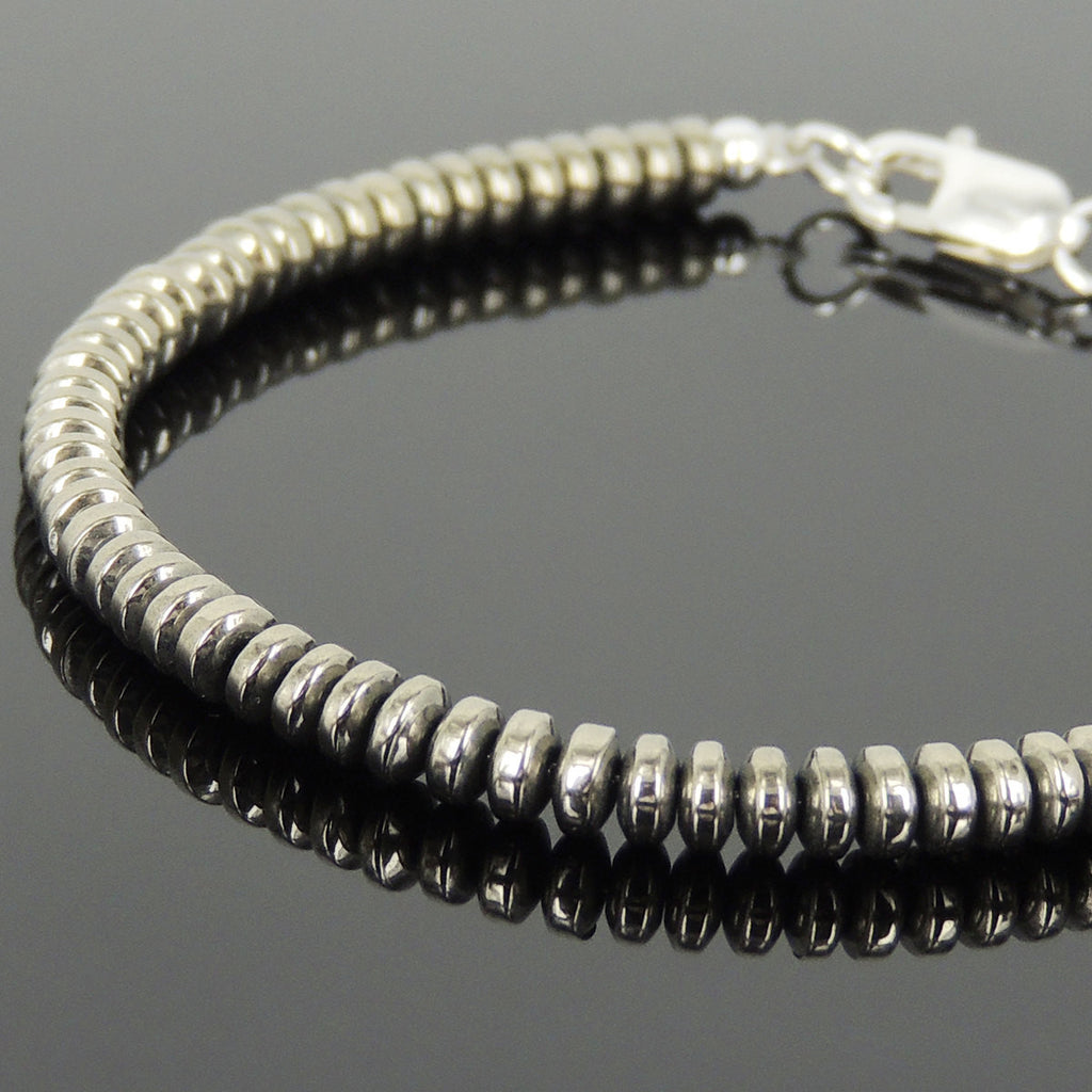 Men's Women Hematite 925 Sterling Silver Bracelet 2x4mm Rondelle Beads Gemstone DiyNotion Handmade BR722