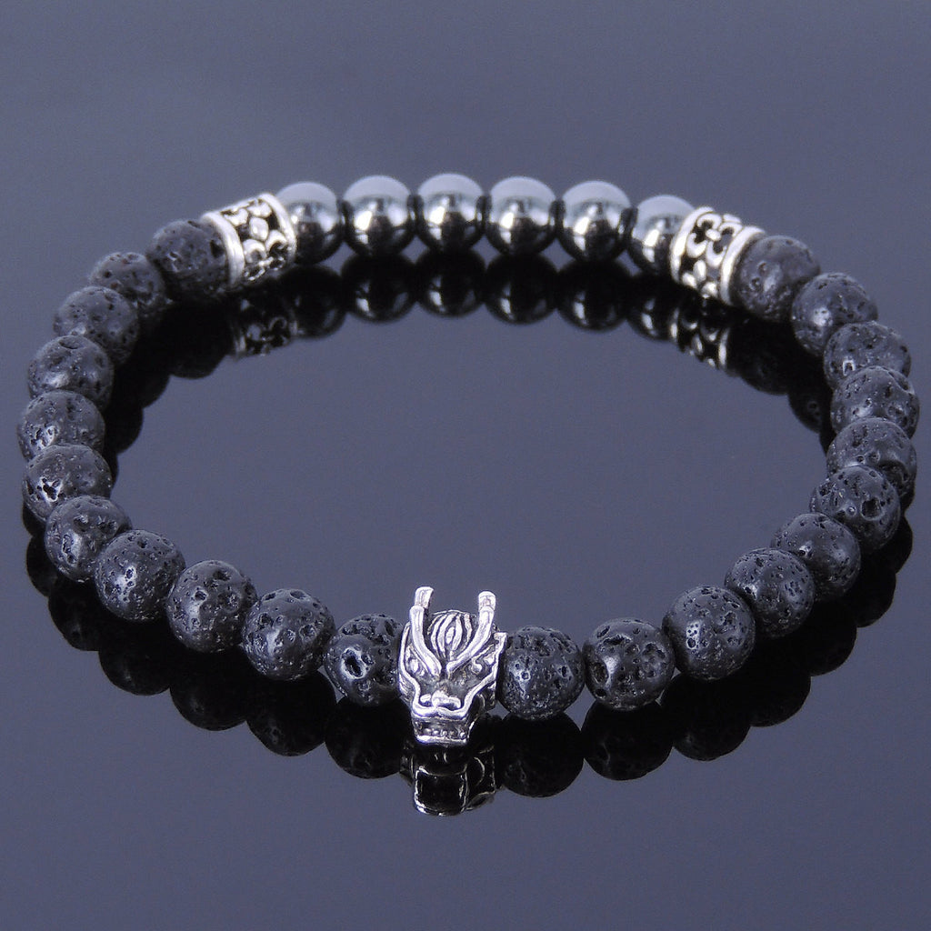 Materials: Lava Rock,Hematite,925 Sterling Silver,Elastic Cords