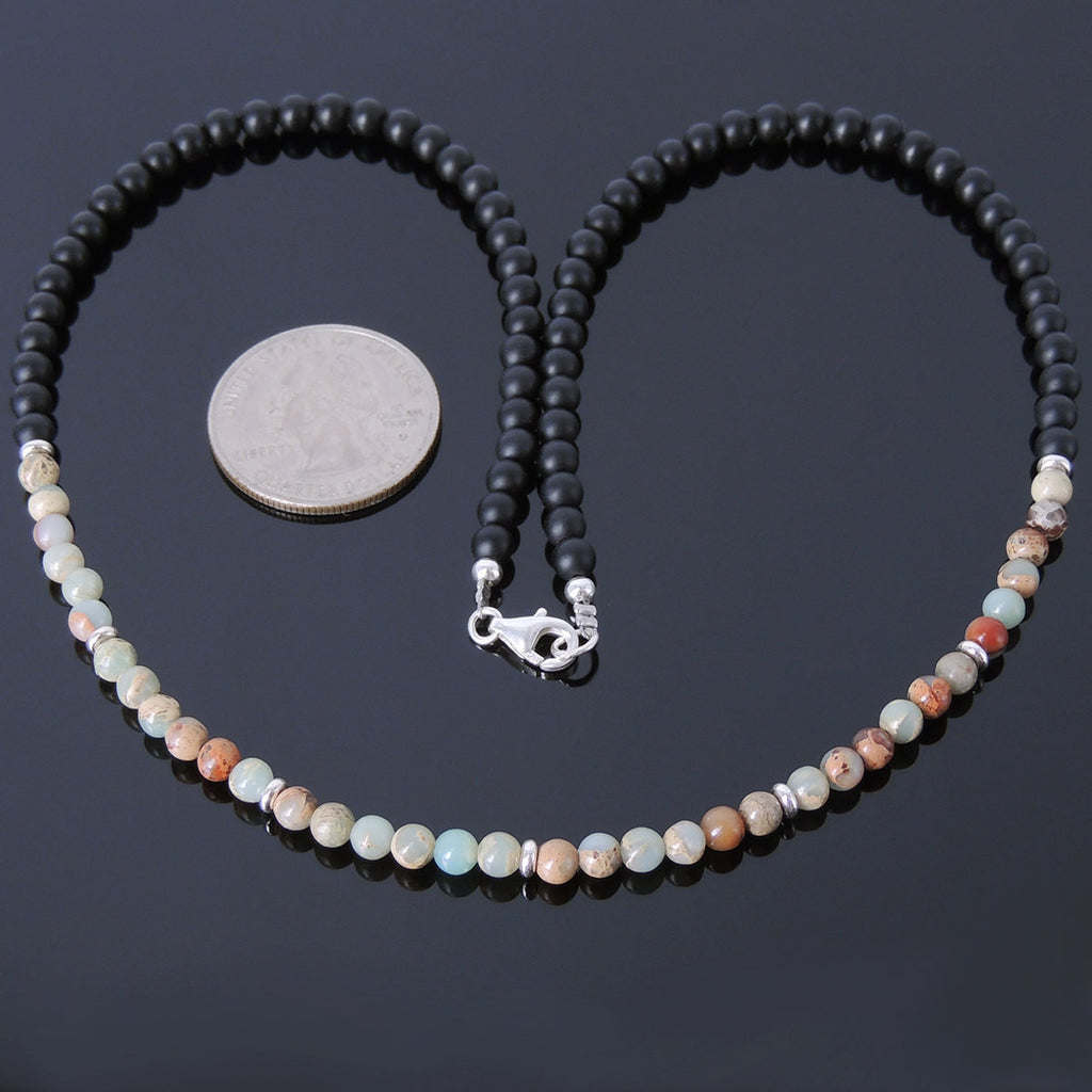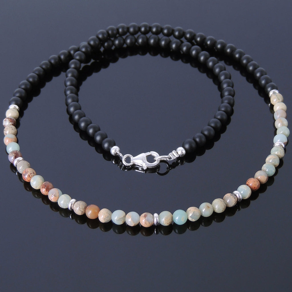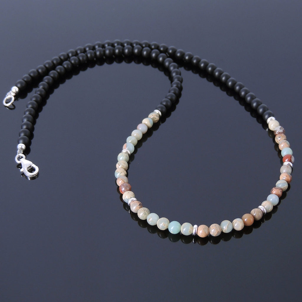 Materials: Gemstone,Jasper Stone,Matte Black Onyx,925 Sterling Silver