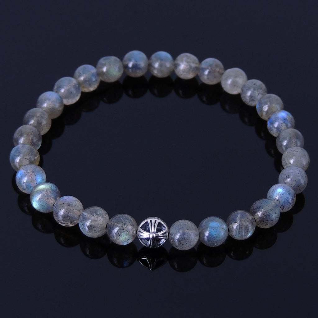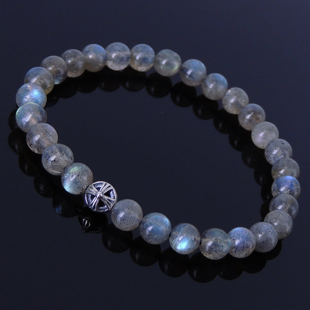 Men's Women Labradorite Sterling Silver Bracelet Gemstone 925 Cross Bead DiyNotion Handmade BR311