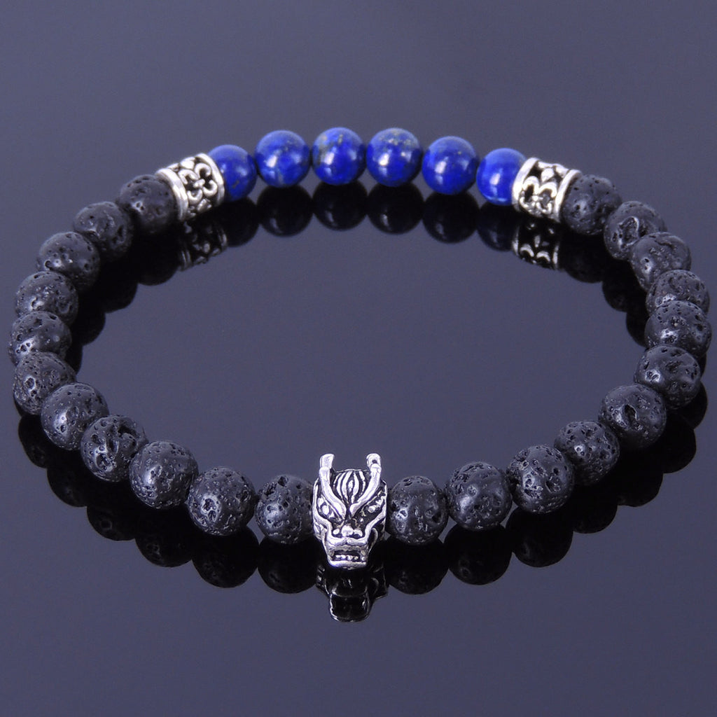 Materials: Lava Rock,Lapis Lazuli,925 Sterling Silver,Elastic Cords