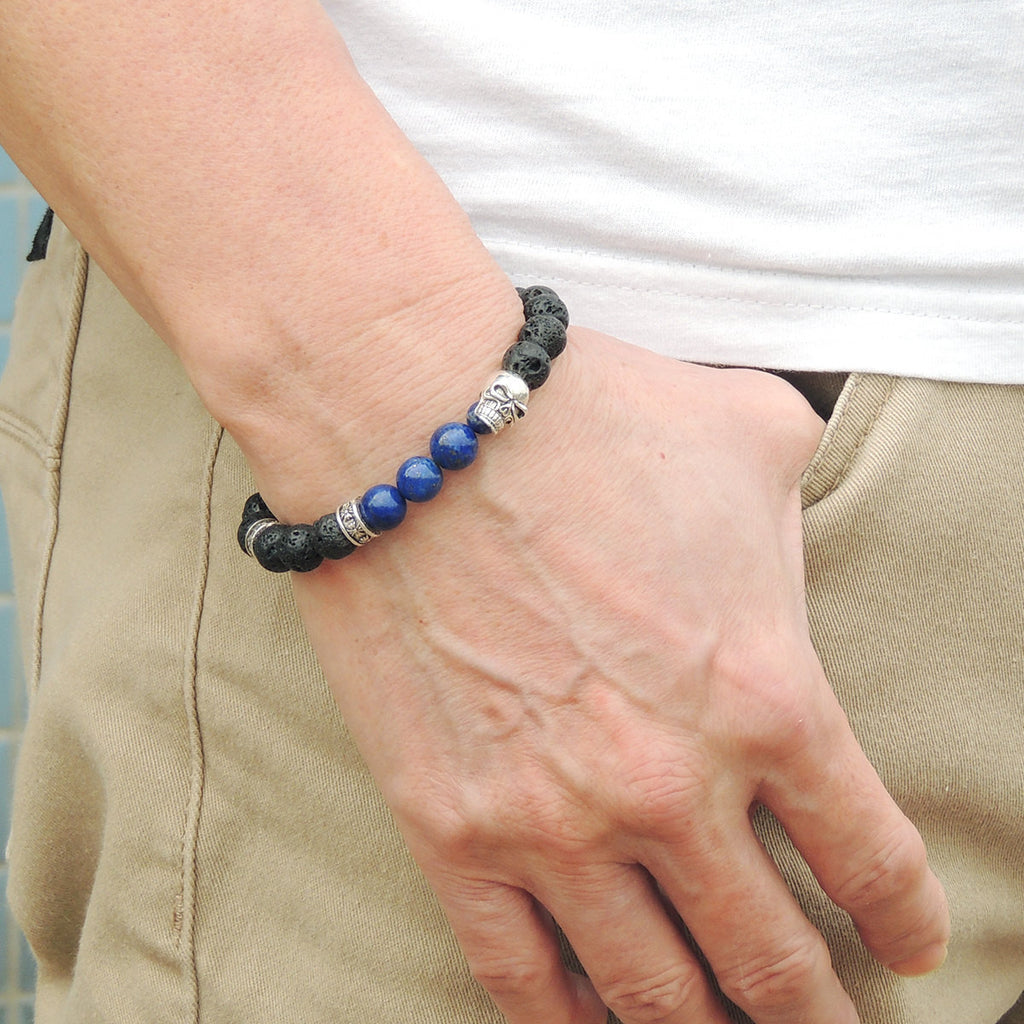 Materials: Gemstone,Lapis Lazuli,Lava Rock,925 Sterling Silver,Elastic Cords