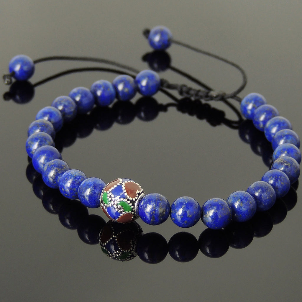 Men's Women Lapis Lazuli Adjustable Braided Bracelet 925 Sterling Silver Hand-painted Bead DiyNotion BR799