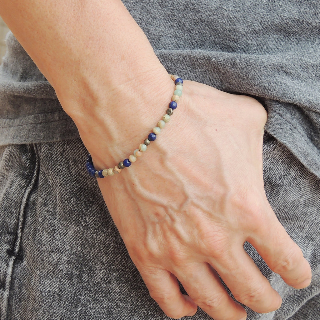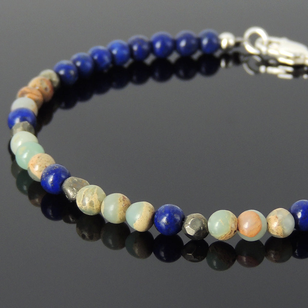 Men's Women Lapis Pyrite Jasper Stone Sterling Silver Bracelet 925 Beads Clasp DiyNotion Handmade BR542