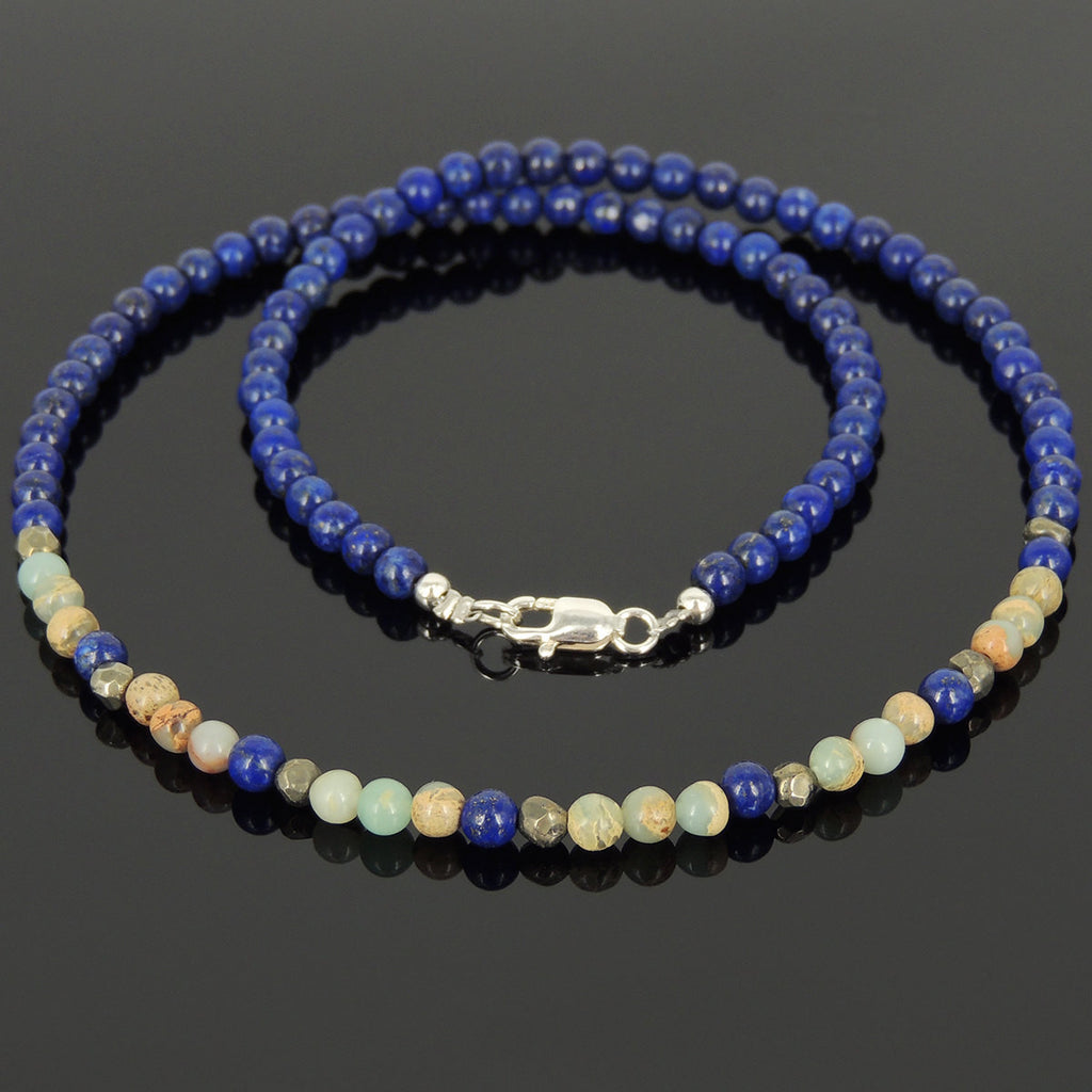Materials: Gemstone,Lapis Lazuli,Jasper Stone,Gold Pyrite,925 Sterling Silver