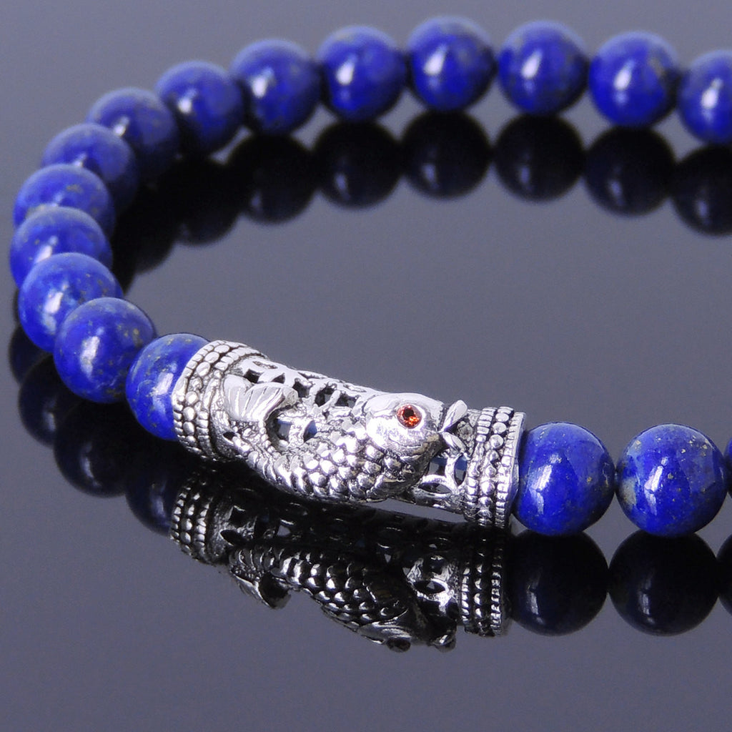 Men's Women Lapis Sterling Silver Bracelet Gemstone 925 Fish Charm Lucky DiyNotion Handmade BR466