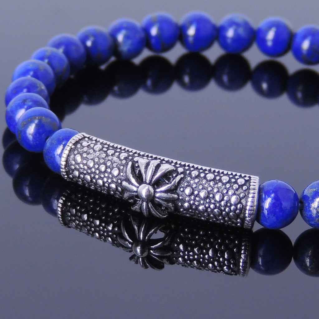Men's Women Lapis Sterling Silver Bracelet Gemstone Cross Charm DiyNotion Handmade BR478