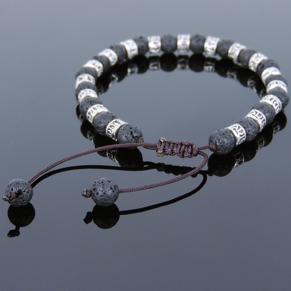 Men's Women Lava Rock Adjustable Braided Bracelet Tibetan Silver OM Buddhism Spacers DiyNotion T243