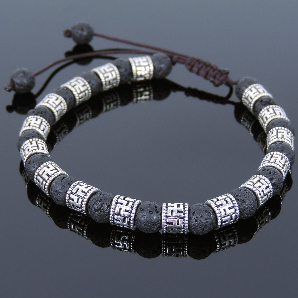 Materials: Lava Rock,Tibetan Silver,Chinese Strong Braided Cords