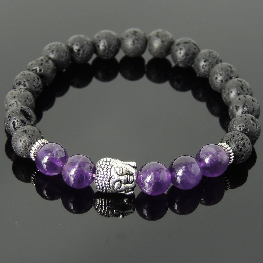 Materials: Lava Rock,Amethyst,Tibetan Silver,Elastic Cords