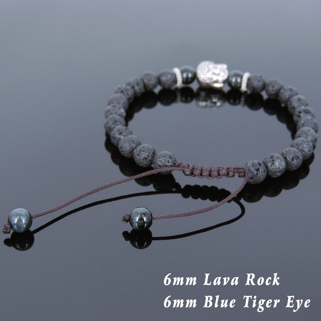 Materials: Gemstone,Lava Rock,Blue Tiger Eye,Tibetan Silver,Chinese Strong Braided Cords