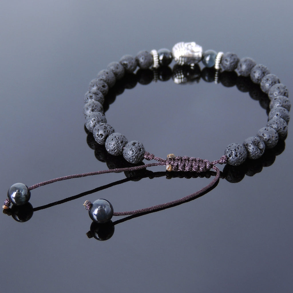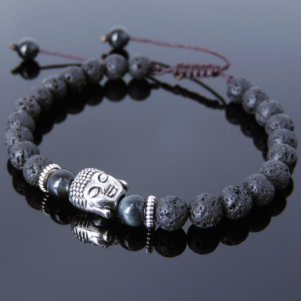 Materials: Gemstone,Lava Rock,Blue Tiger Eye,Tibetan Silver,Chinese Strong Braided Cords