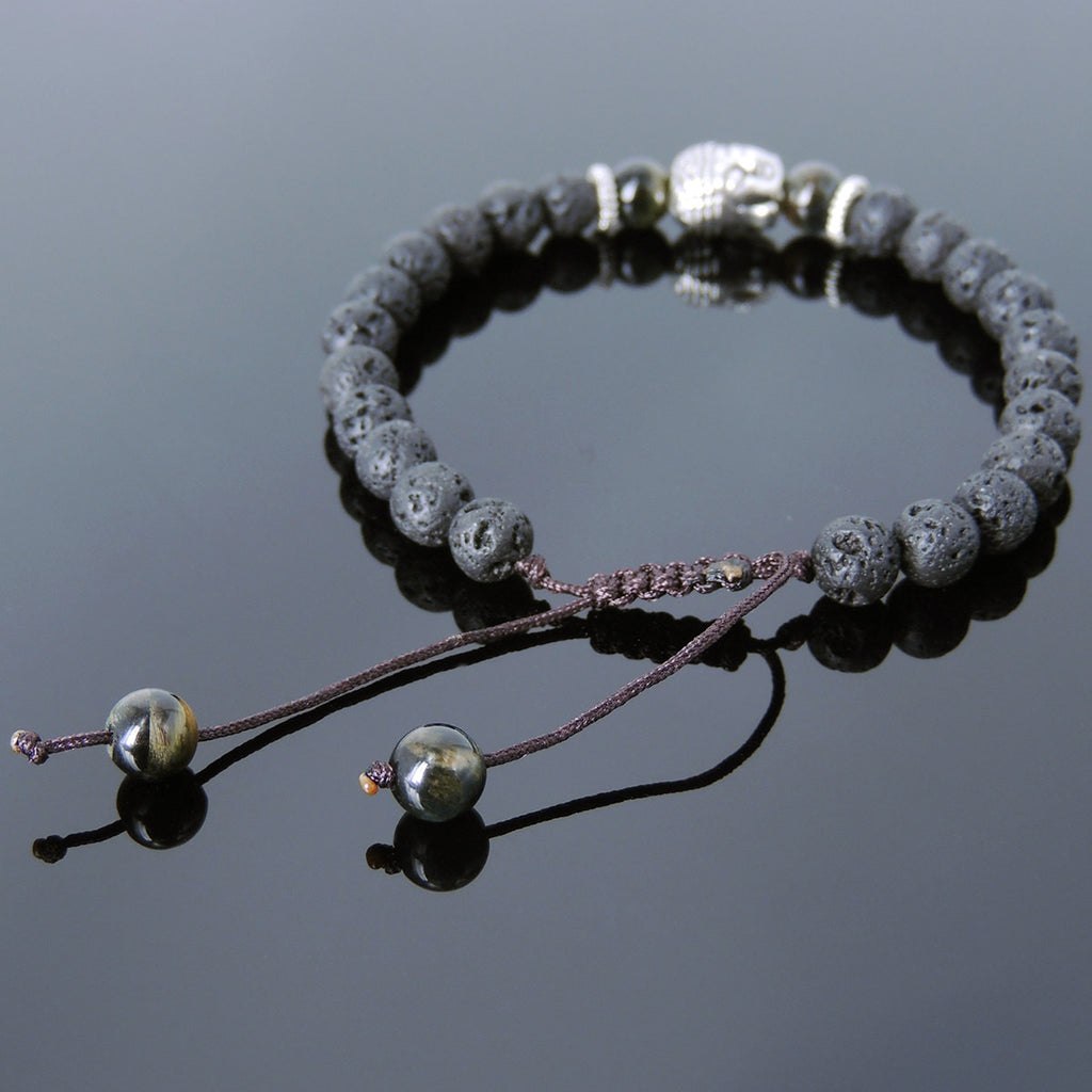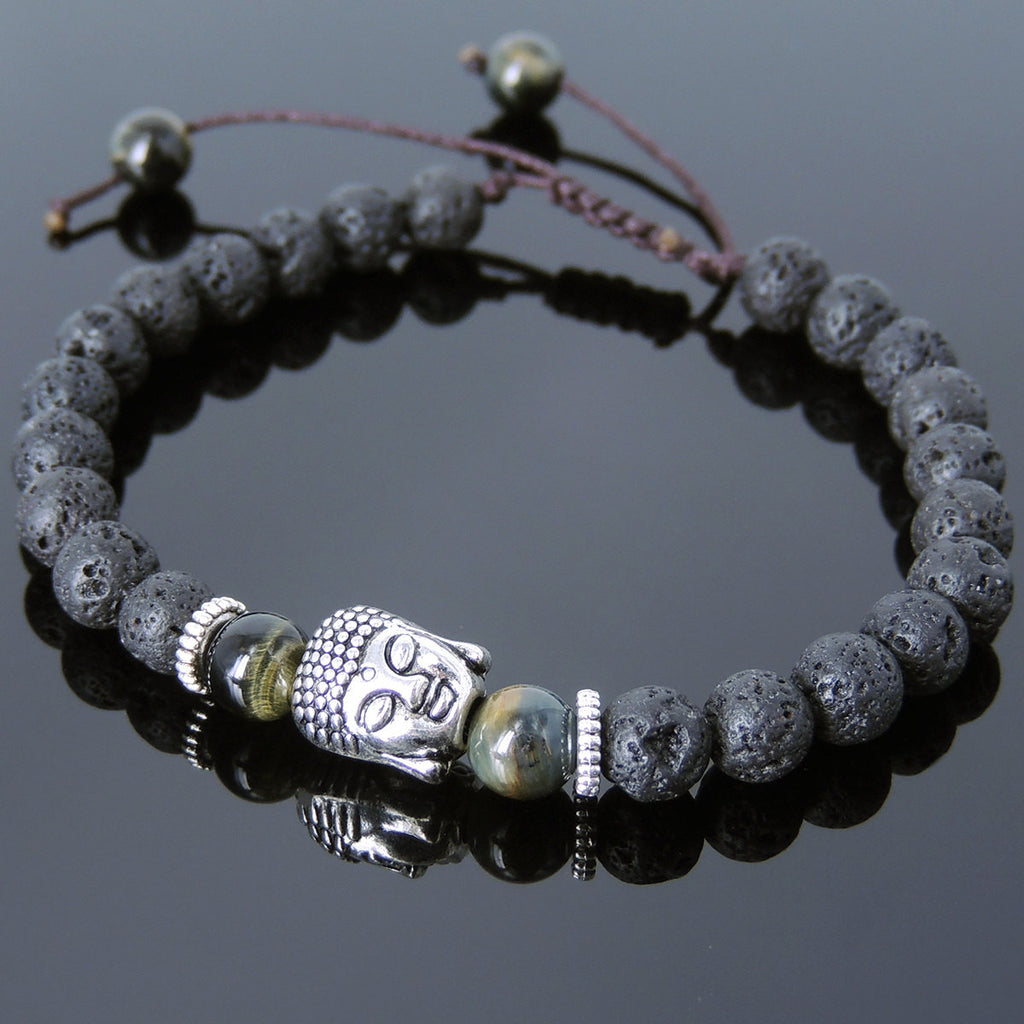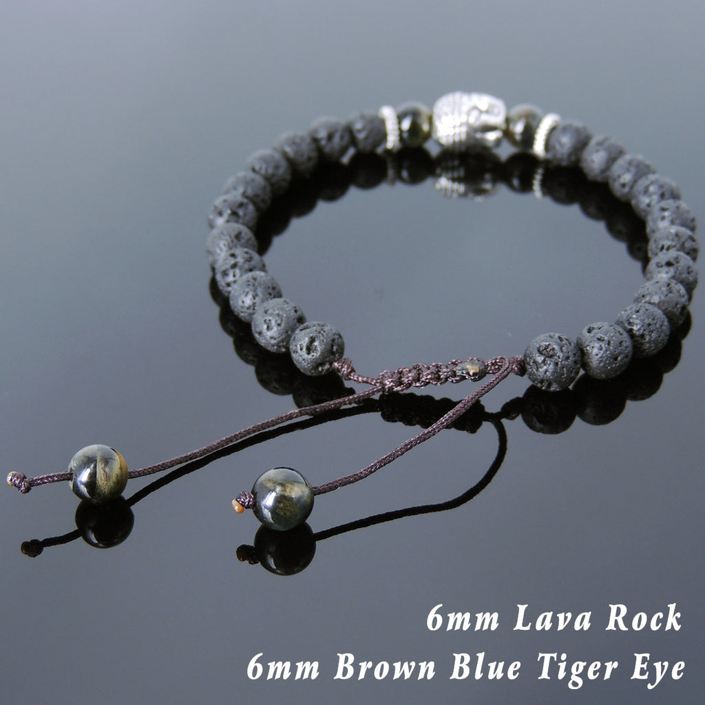 Materials: Gemstone,Lava Rock,Brown Blue Tiger Eye,Tibetan Silver,Chinese Strong Braided Cords