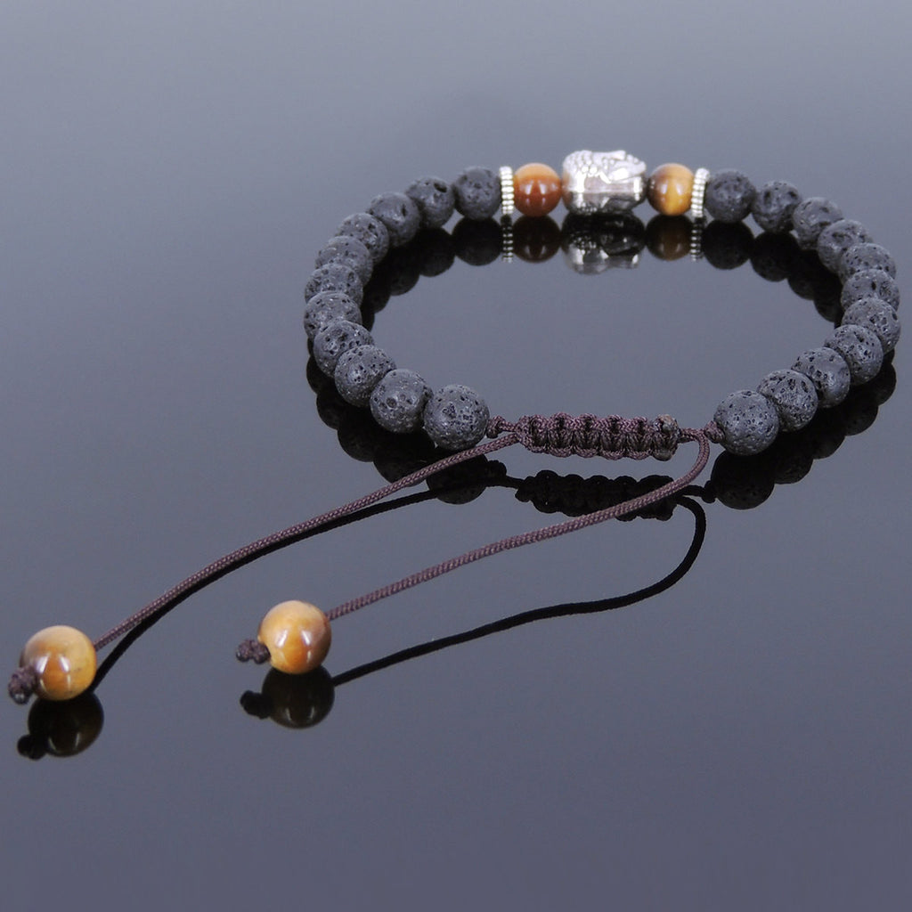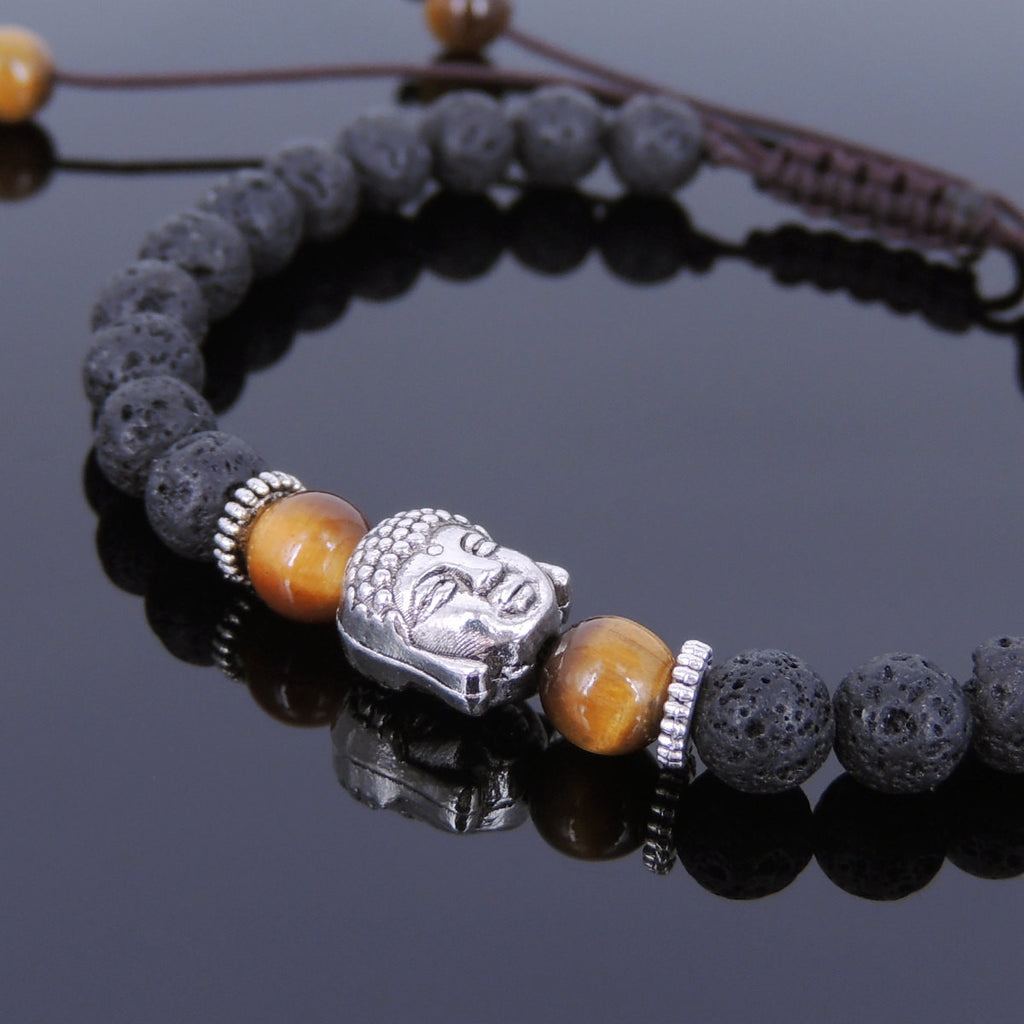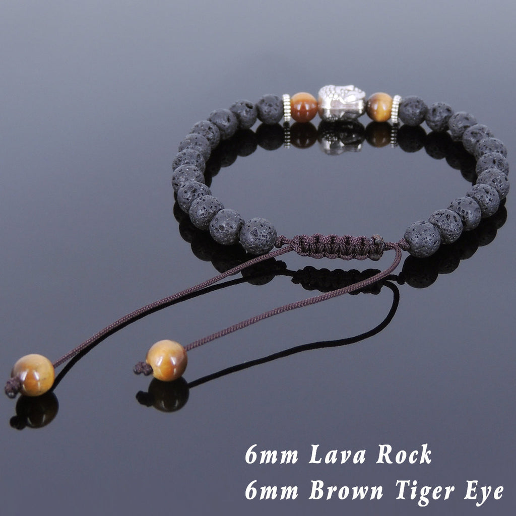 Materials: Gemstone,Lava Rock,Brown Tiger Eye,Tibetan Silver,Chinese Strong Braided Cords