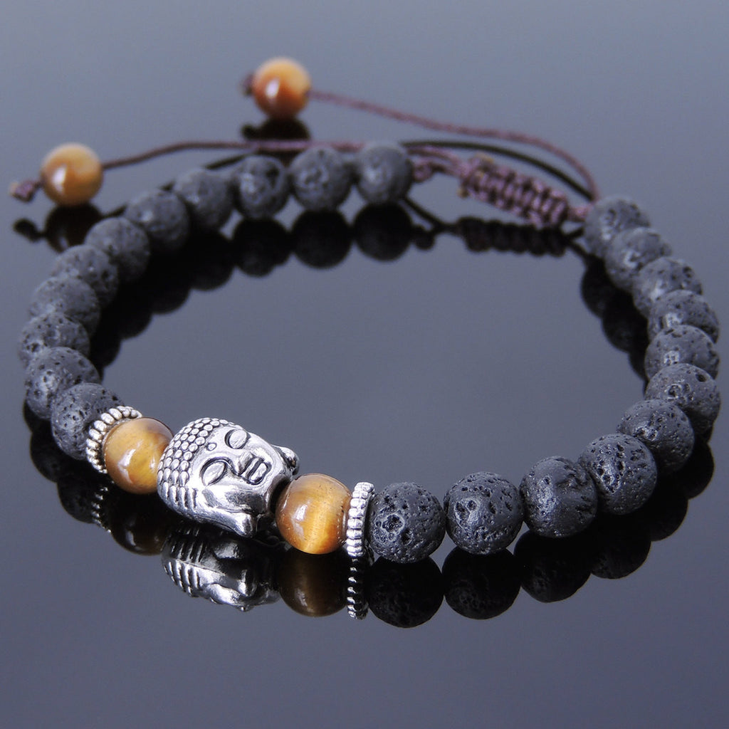 Materials: Gemstone,Lava Rock,Brown Tiger Eye,Tibetan Silver,Chinese Strong Braided Cords