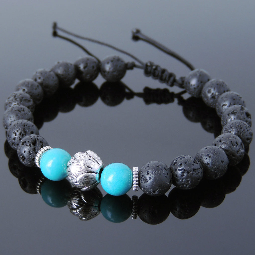 Materials: Lava Rock,Enhanced Turquoise,Tibetan Silver,Chinese Strong Braided Cords