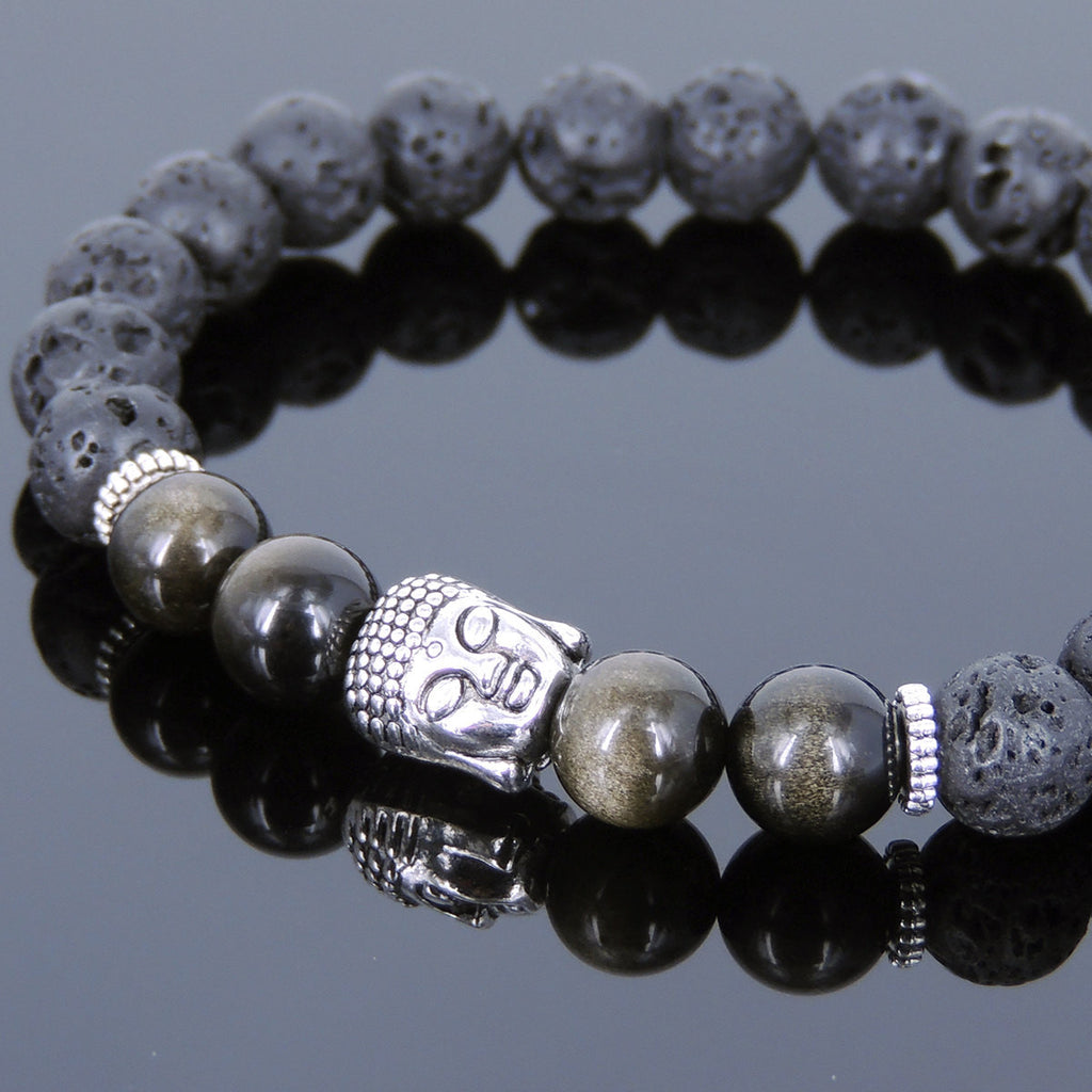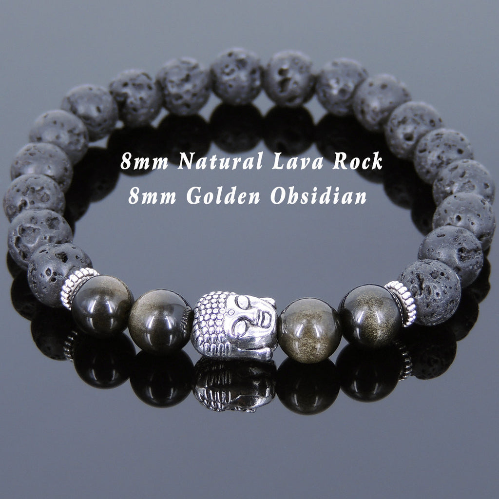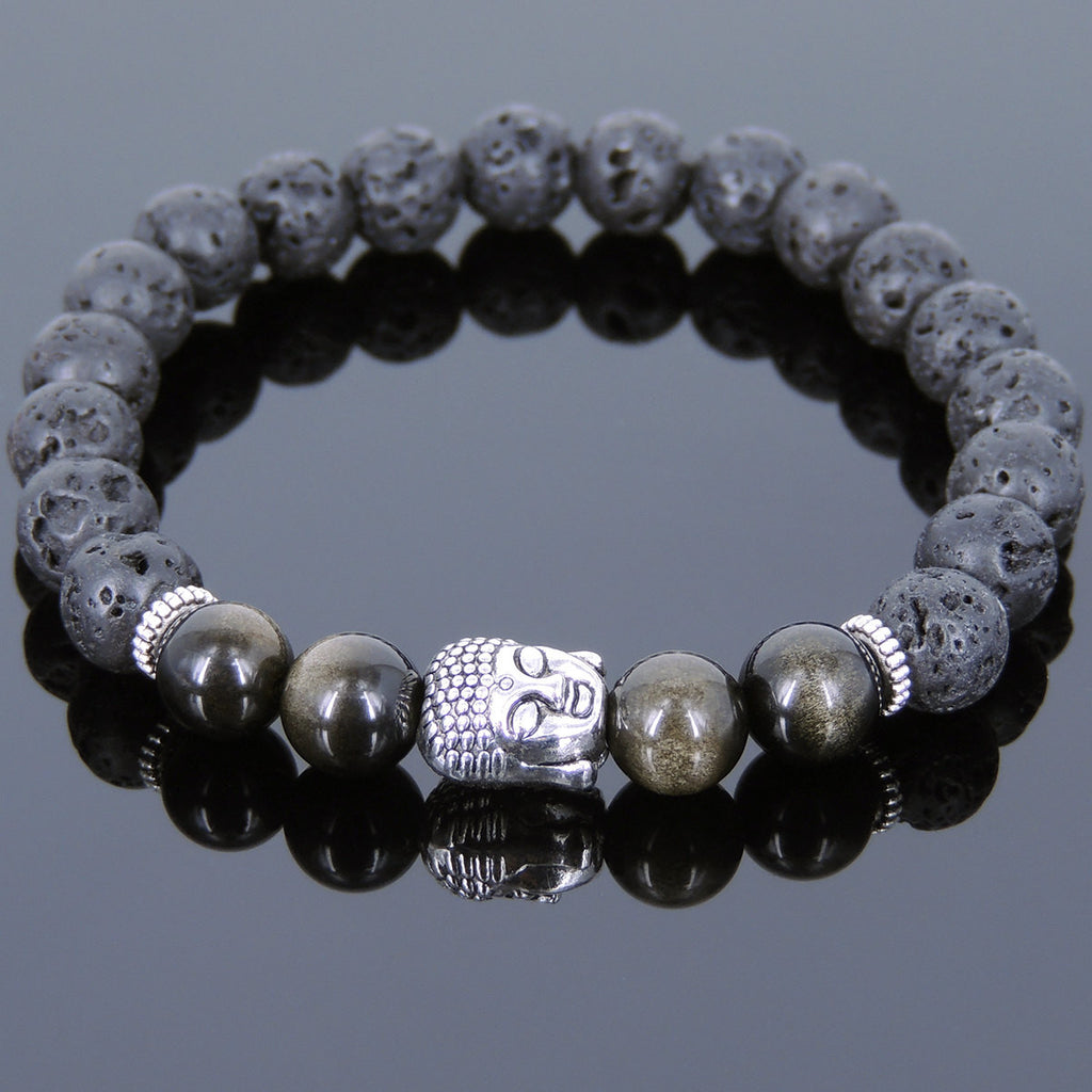 Materials: Lava Rock,Golden Obsidian,Tibetan Silver,Elastic Cords
