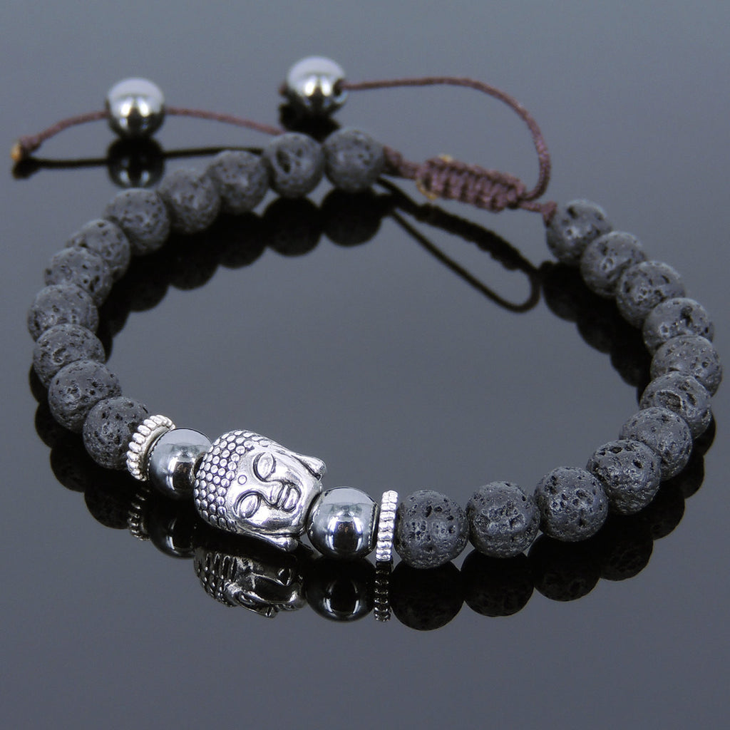 Men's Women Lava Rock Hematite Adjustable Braided Bracelet Tibetan Silver Sakyamuni Buddha Head Bead Buddhism DiyNotion T237