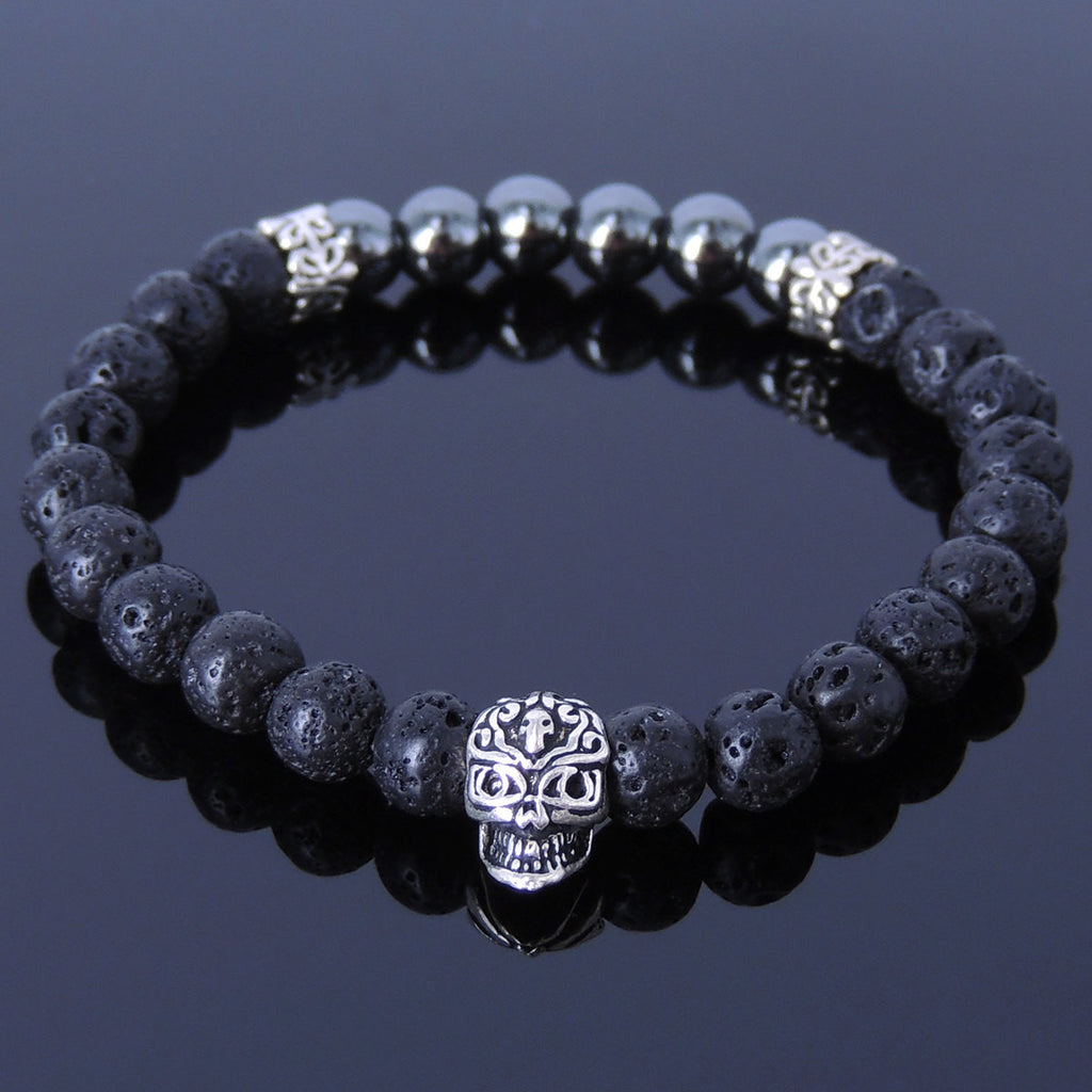 Materials: Lava Rock,Hematite,925 Sterling Silver,Elastic Cords