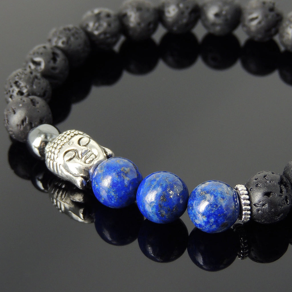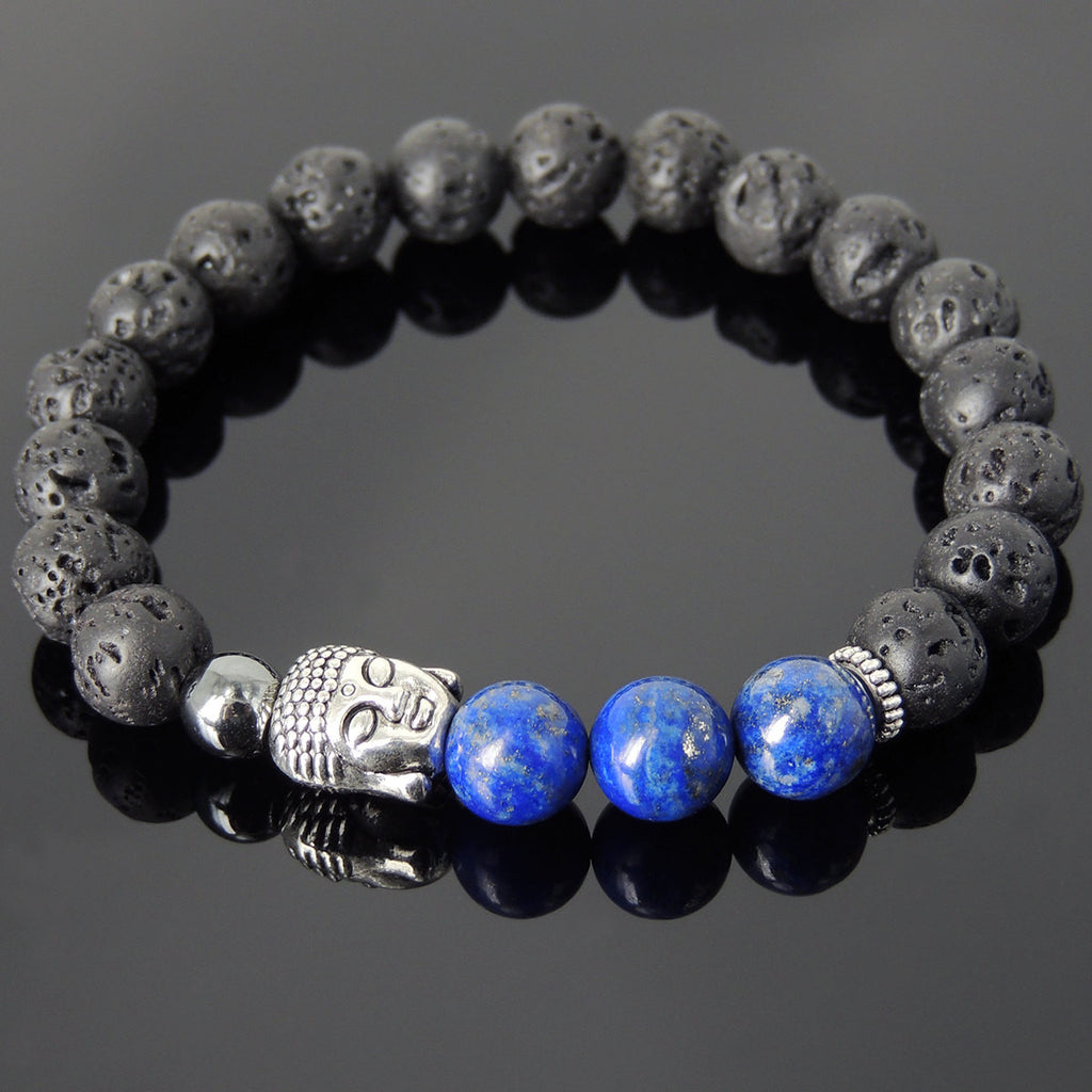 Materials: Lava Rock,Lapis Lazuli,Hematite,Tibetan Silver,Elastic Cords