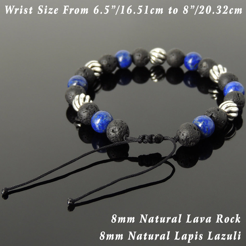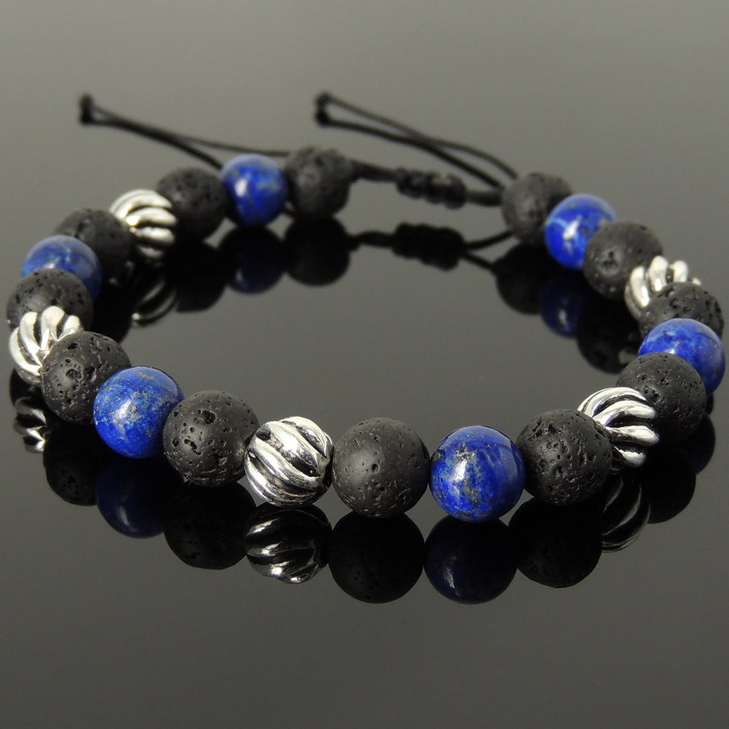 Materials: Gemstone,Lava Rock,Lapis Lazuli,925 Sterling Silver,Chinese Strong Braided Cords