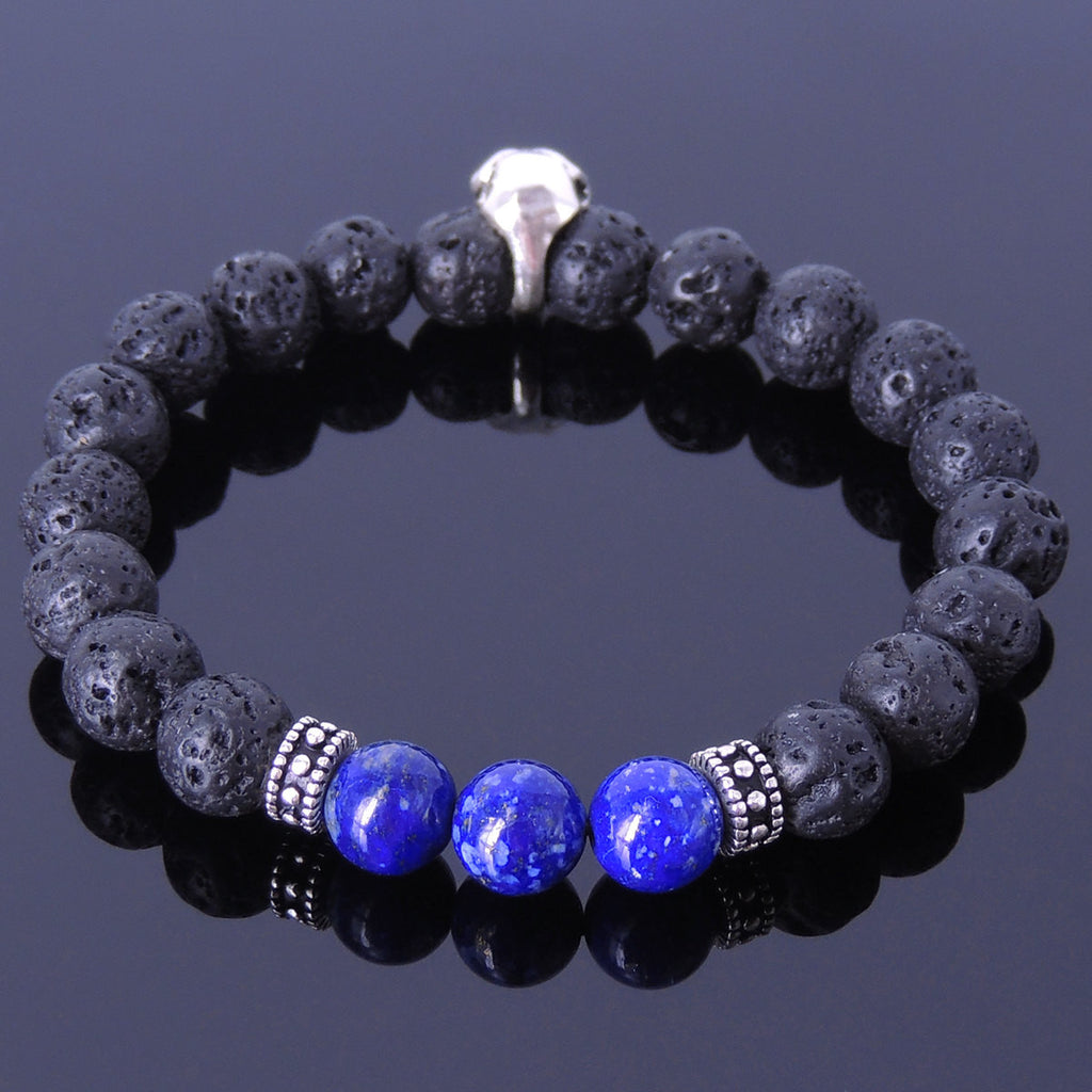 Materials: Gemstone,Lava Rock,Lapis Lazuli,925 Sterling Silver,Elastic Cords
