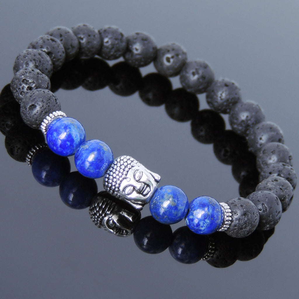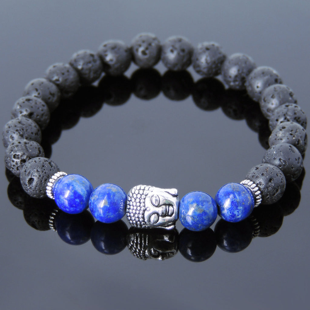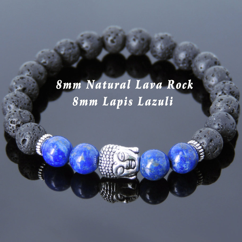 Materials: Lava Rock,Lapis Lazuli,Tibetan Silver,Elastic Cords