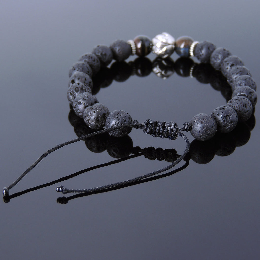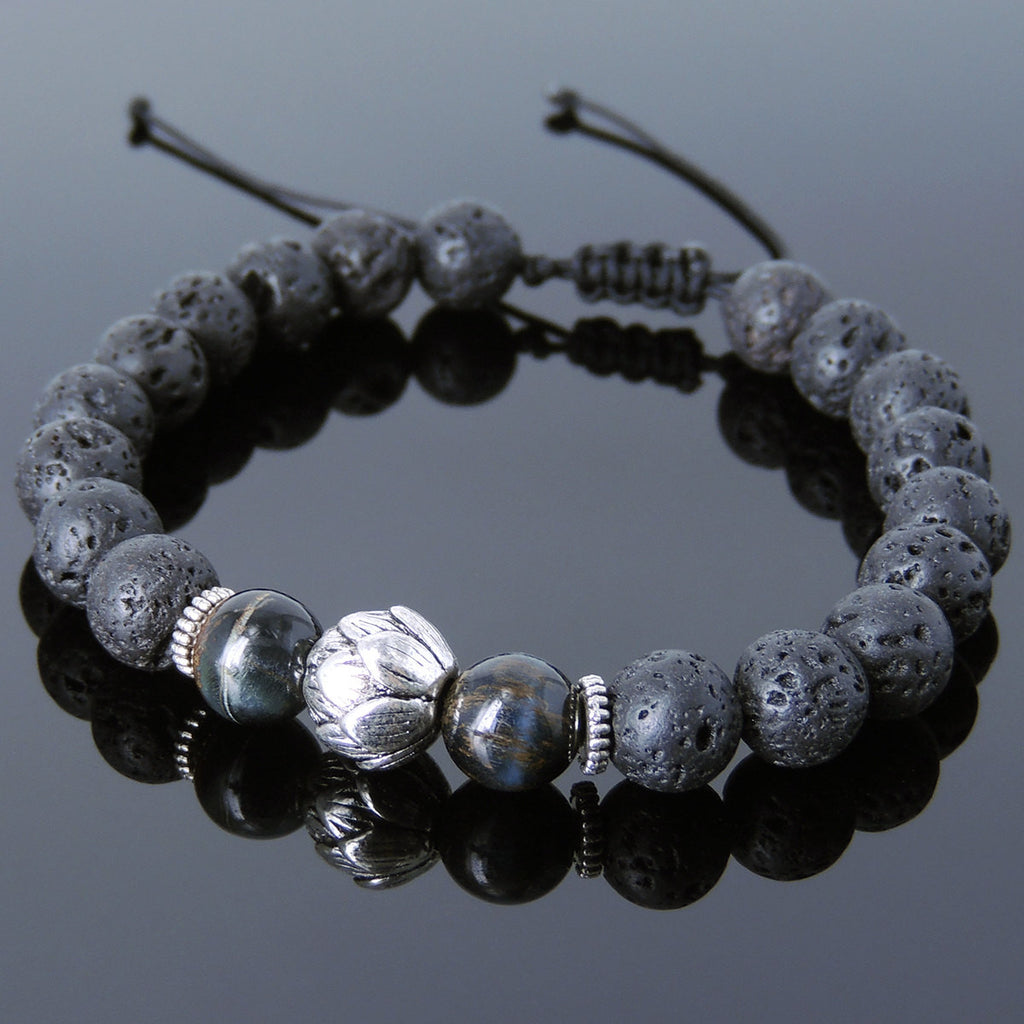 Materials: Lava Rock,Mixed Blue Tiger Eye,Tibetan Silver,Chinese Strong Braided Cords