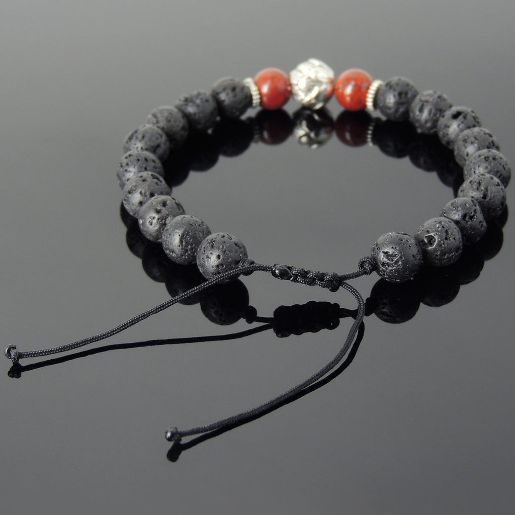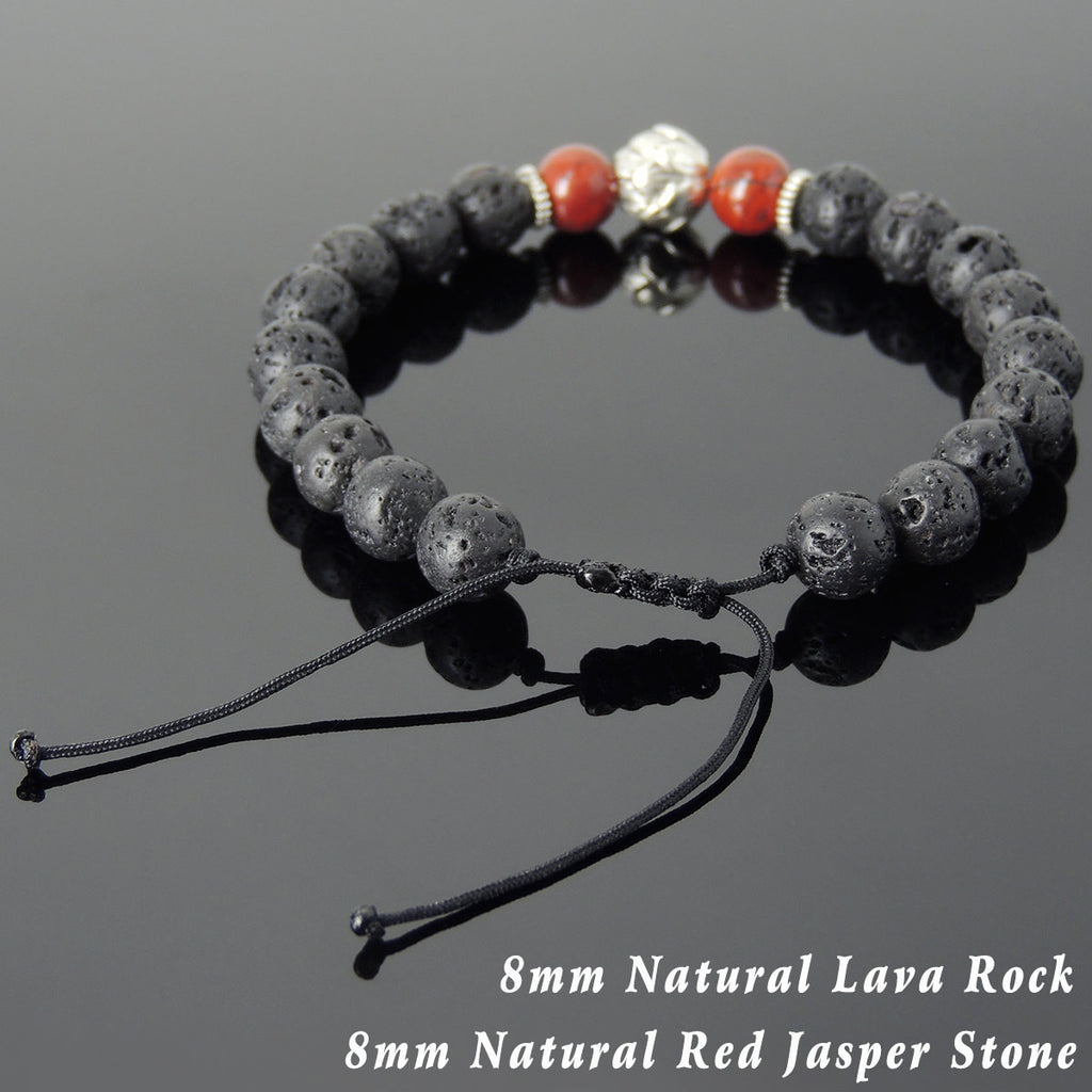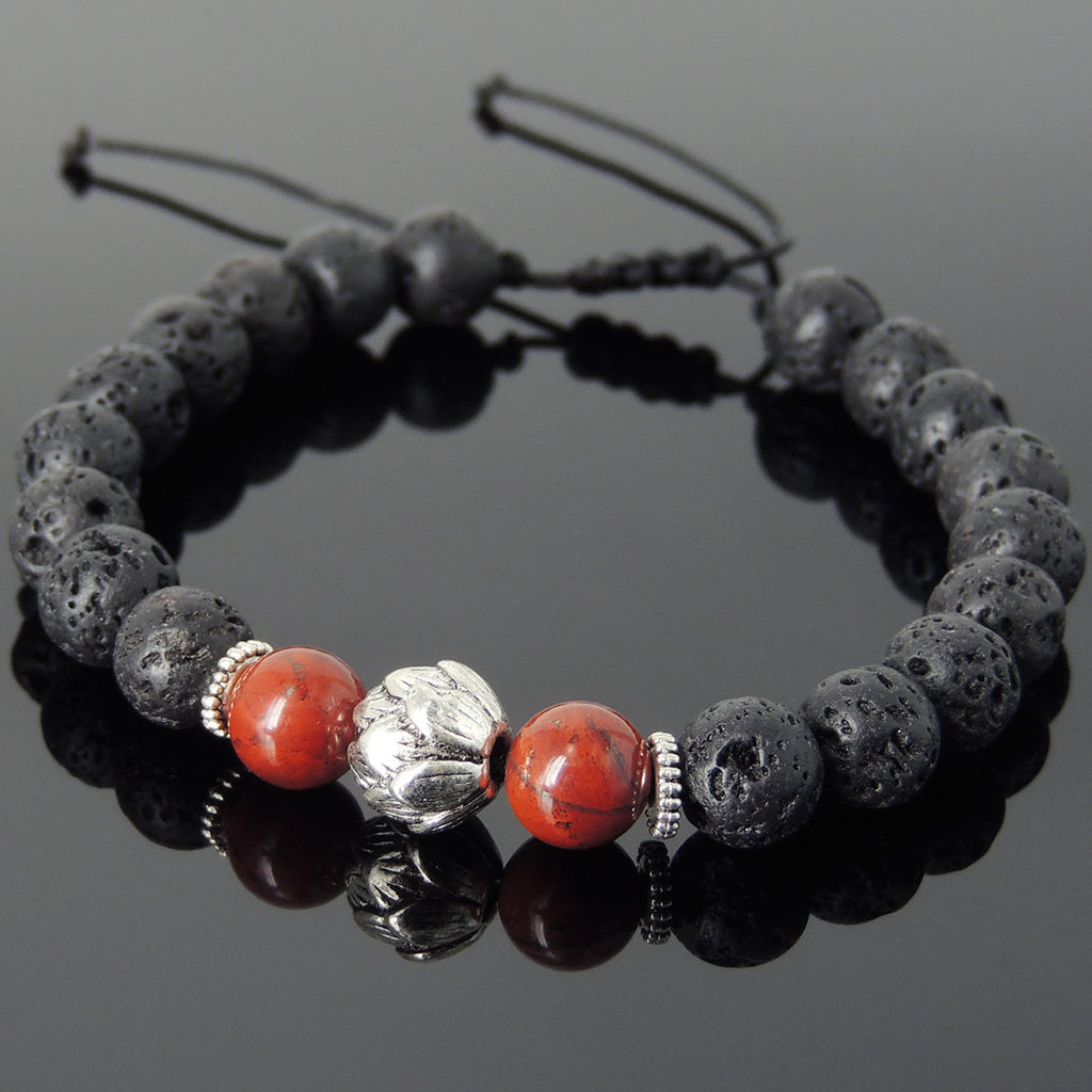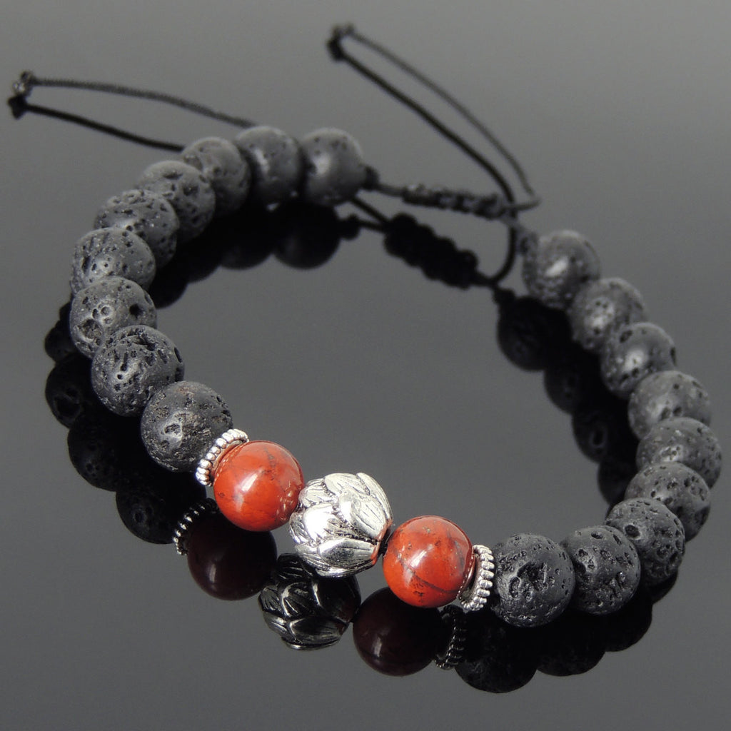 Materials: Lava Rock,Red Jasper Stone,Tibetan Silver,Chinese Strong Braided Cords